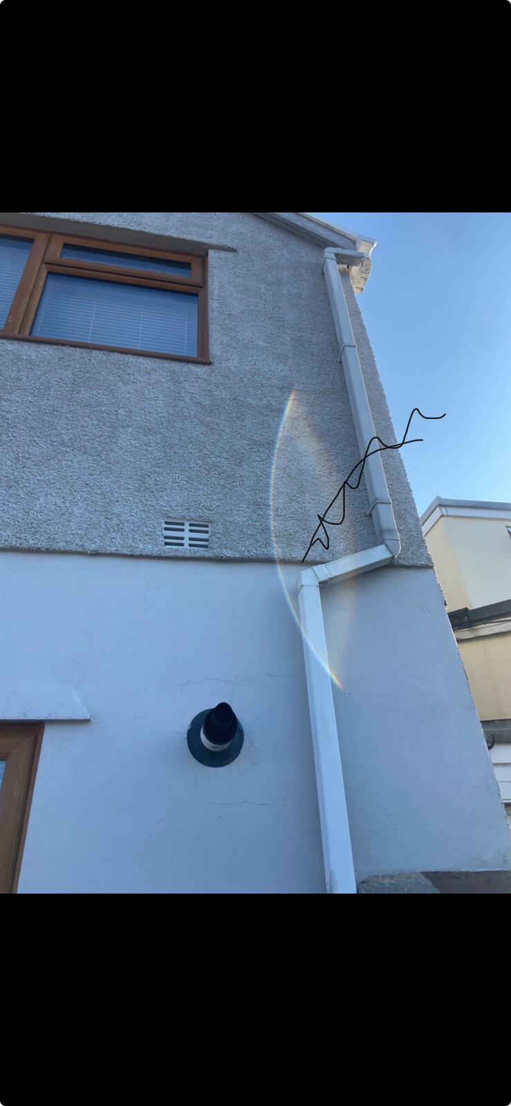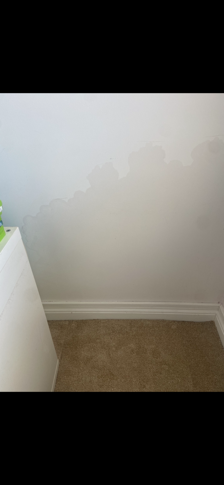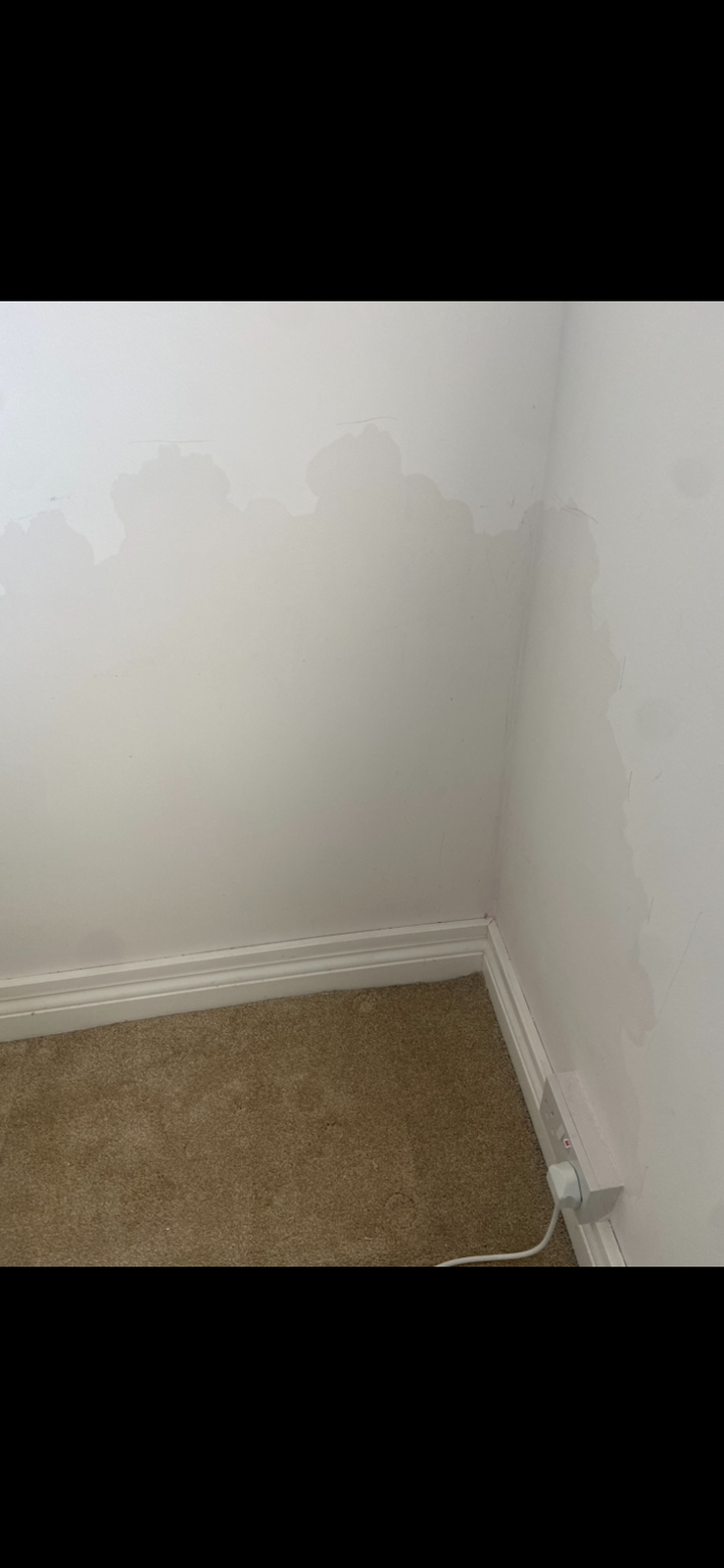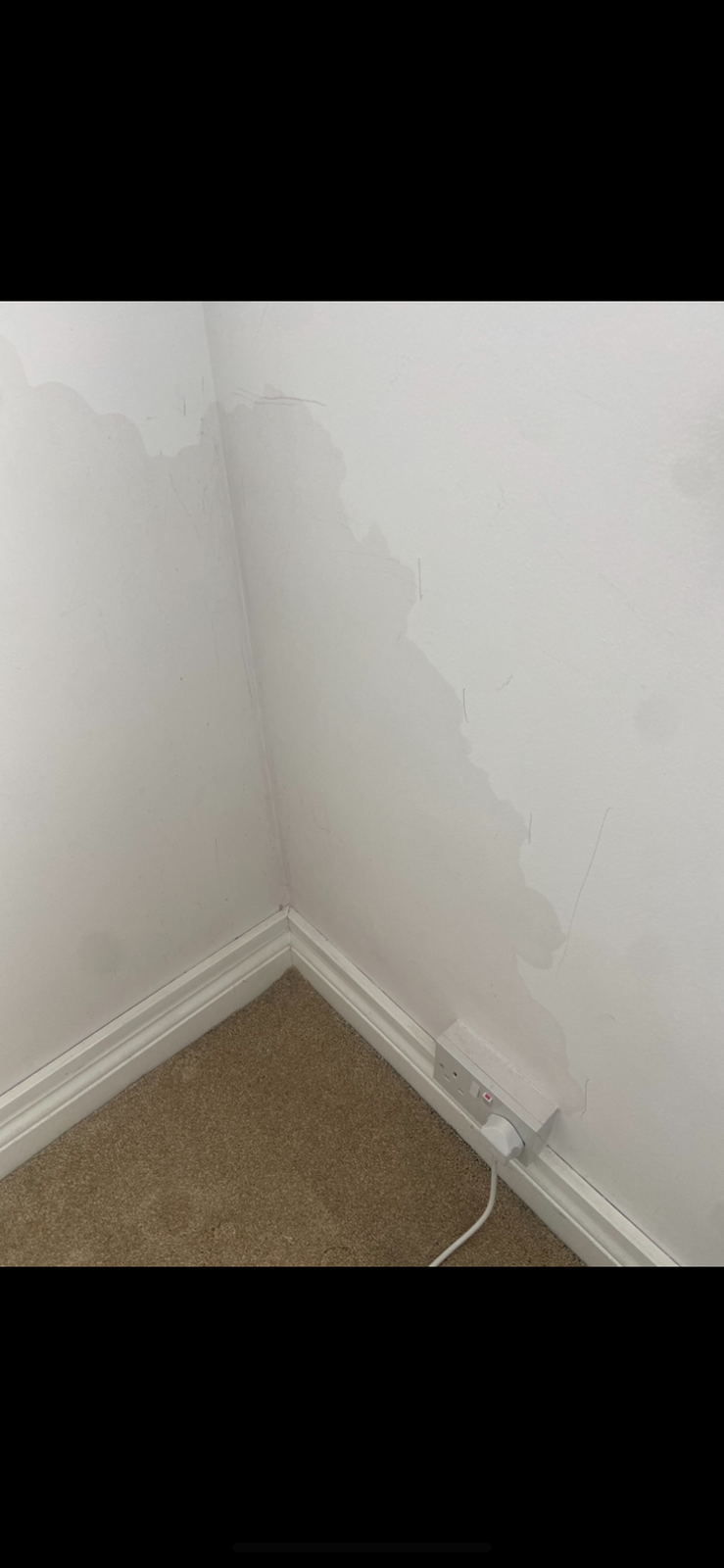 Could anyone advise what is going on here please. These water marks have appeared in the corner of the bedroom wall. They are not wet to touch just slightly cooler. The outside wall is pebble dashed. I’ve had a dehumidifier running for a week and the drum is full every time. It started on 75 and has come down to 40, if I shut it off for a few hours it goes back up to 55. Many thanks in advance.
