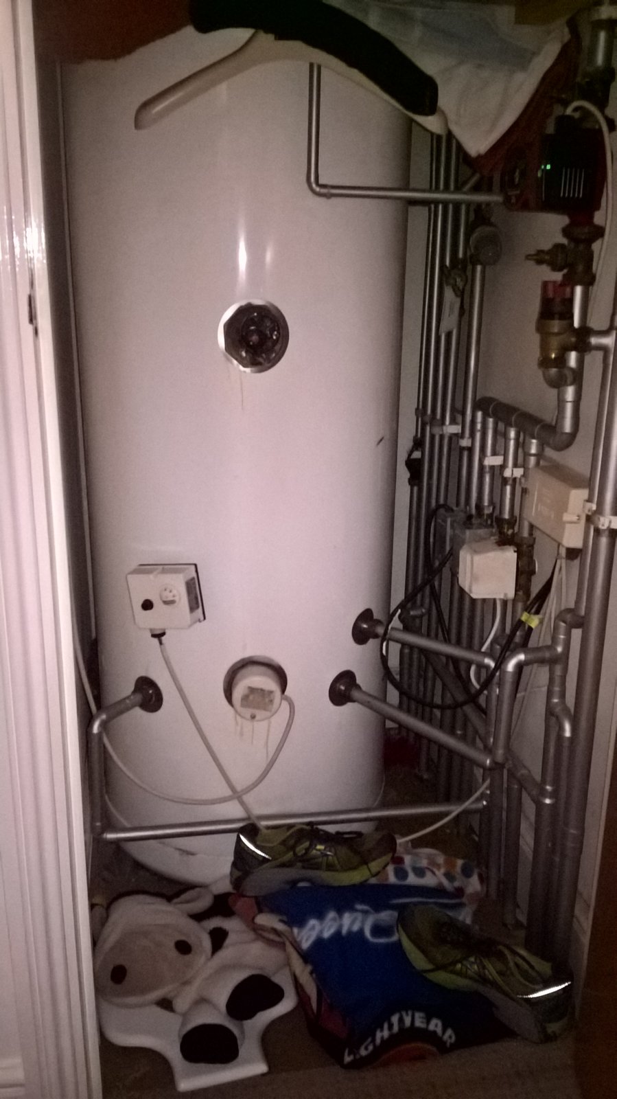 Our hot water cylinder has no manufacturer name on it so I cannot find a manual. The system is fed directly from the mains with new gas condenser boiler, cylinder, and container above the cylinder looking like a pressure cylinder. The system feeds 2 first floor showers, a first floor bath, and a second floor shower, and ground kitchen. The hot water pressure is ok but how can the pressure be increased please?