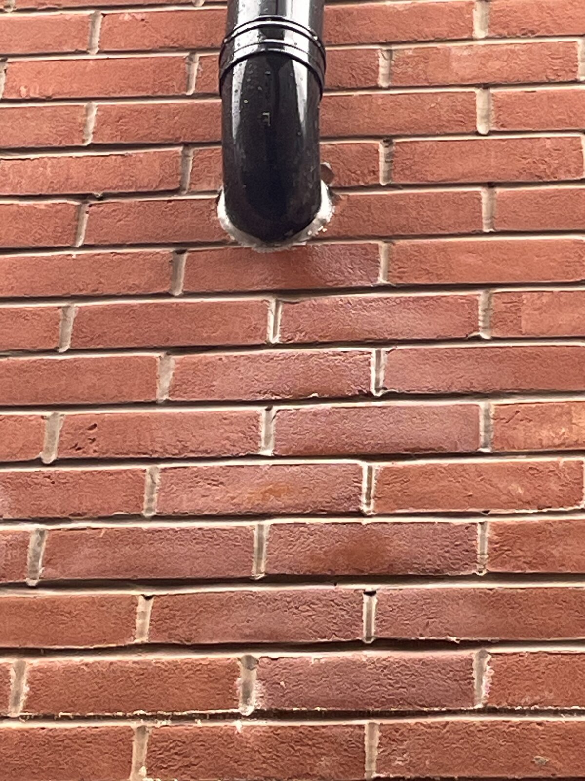 The rain catches on the pipe, runs down it and onto the brick work. I wondered if there was something that could be attached that would let the water run down or drip to the ground, away from the brickwork