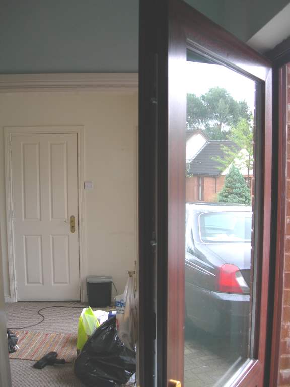 I moved into this house a month ago, and have had to do a lot of work. One of the first things I did was get complete new locking mechanisms etc fitted to the 3 external doors by a locksmith – the doors took a lot of jiggling and forcing to lock, then it took you half a day to get them unlocked again – and the handles were drooping down etc. 25 years old or so.