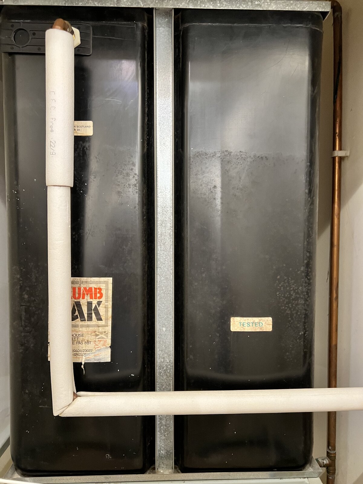 I'm aware that I probably need to get someone to physically take a look, but I am hoping that somebody here has an idea of what they do before I do that. The property is rented and both the tanks look absolutely ancient, so if I can make an argument for it to be replaced, it would be useful because the lack of pressure and time it takes for hot water is starting to become annoying.
