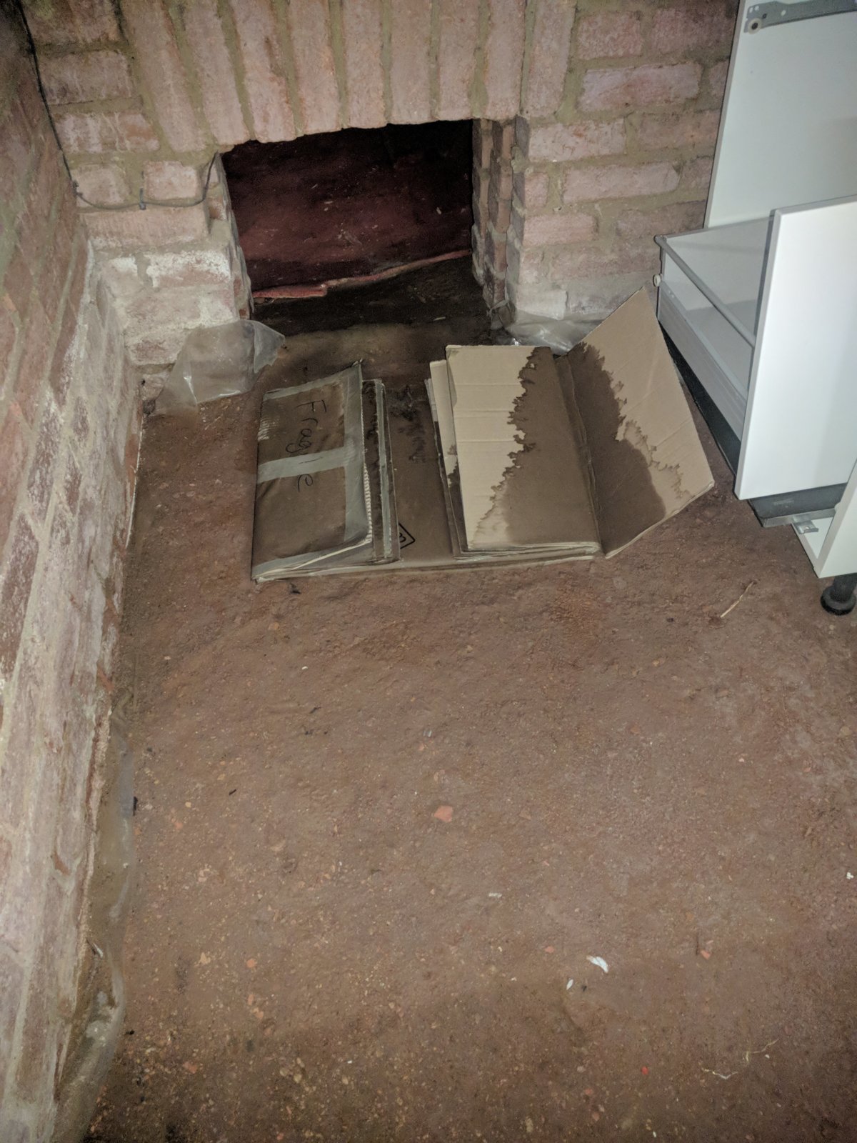 On the outside of the wall, there's a drain cover and a few small bushes. I can get a picture of that tomorrow. Also on a slight hill, so any water may be running off the neighbors garden.