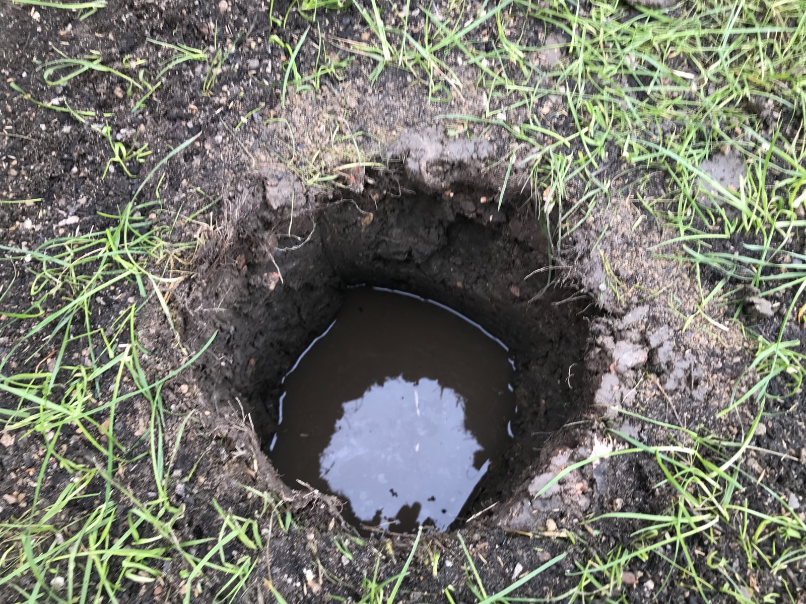 Have tried hollow tine aeration, top dressing with sand etc, with little difference. So decided I would dig a few sumps using an 8” Petrol driven auger, with the plan being to fill them with stones, then top off with topsoil and seed.