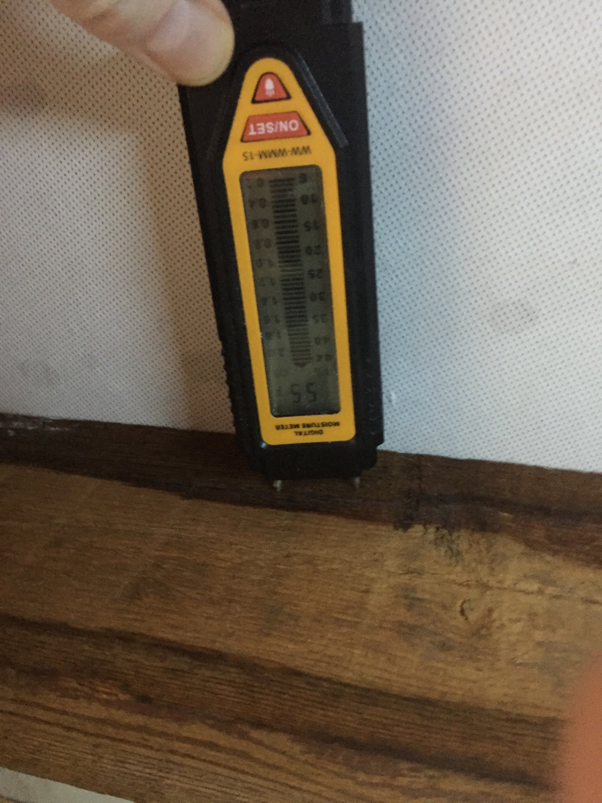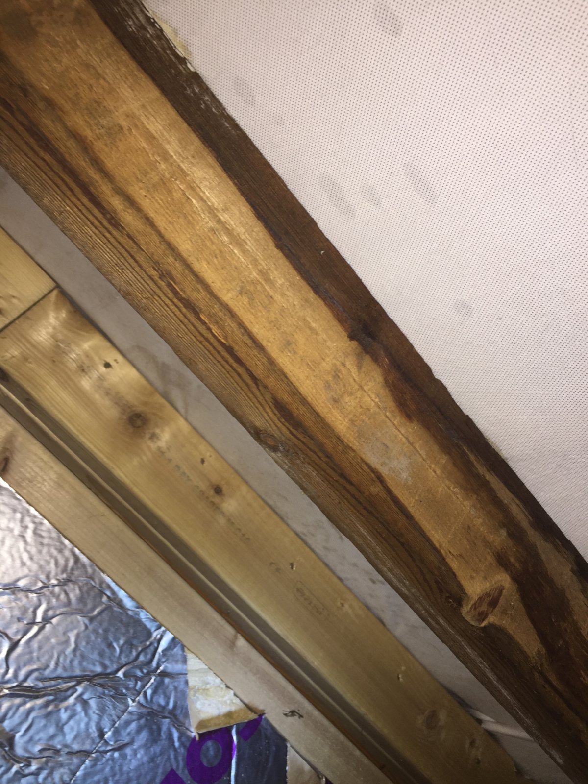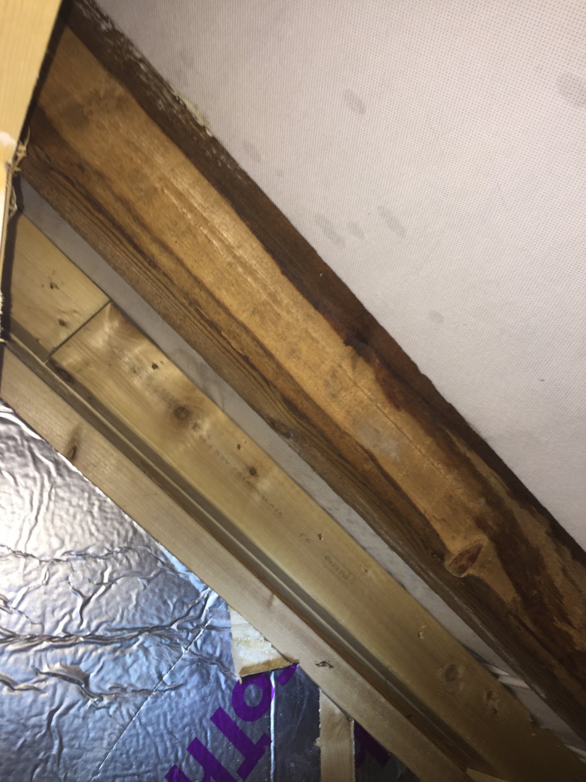 Whilst in the loft today I have noticed there is a strong water mark on a rafter. It feels wet to touch and checking with a moisture detector confirms its wet.