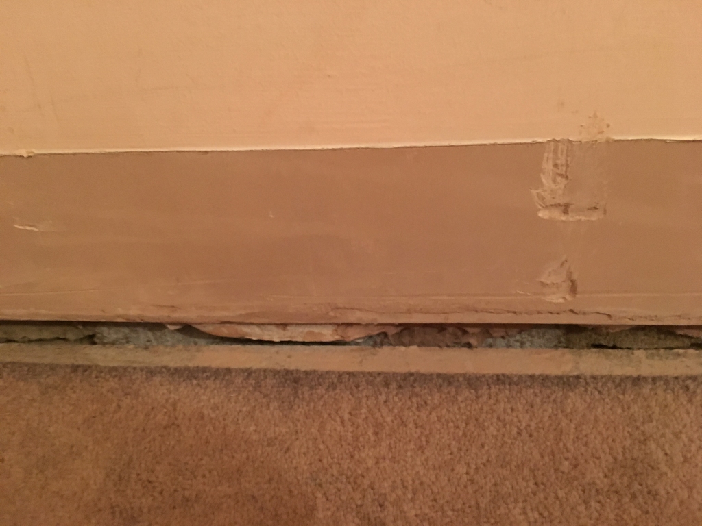 - Black marking on carpet edges, presumably where air flows around carpet edges to skirting boards