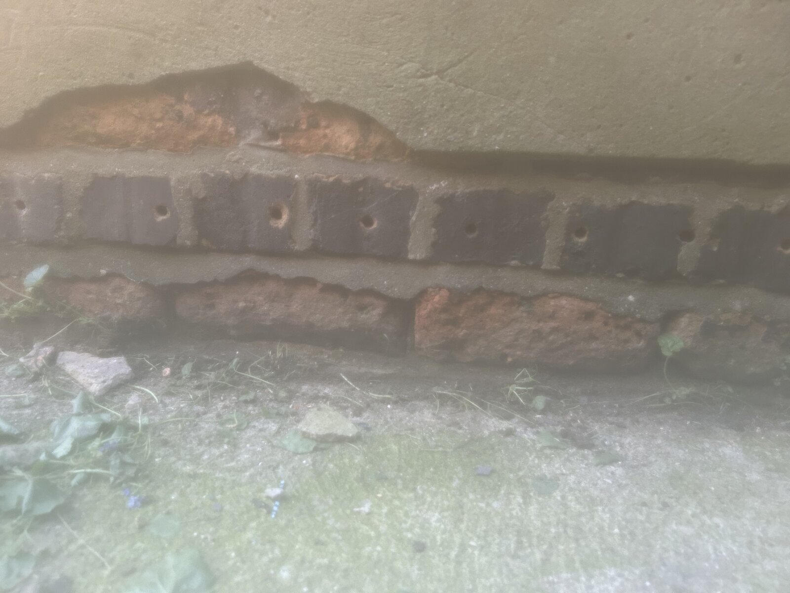 So I live in a house buuikt in 1890. It’s an end terraced house down the side of the house the bottom course of bricks is very weathered and the mortar is in a bad way. The side of the house is rendered above the DPC.