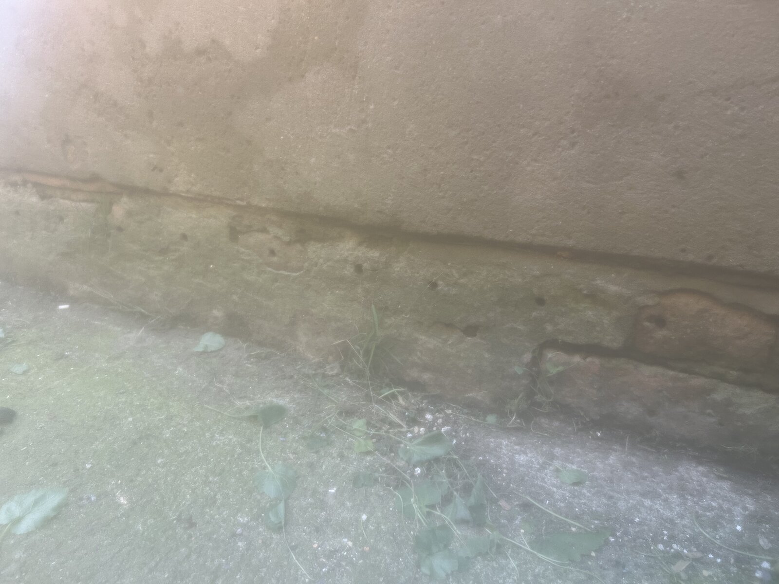 There was a an injection damp proof course done before we moved in and all the holes are left open.