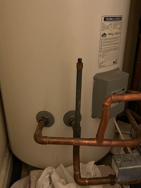 However - whilst getting all the radiators to get hot one of the things he did was fiddle with the manual air release valve on the flow into the cylinder (see the picture). It hasn't been touched since we moved in 14 years ago. As a result, it's weeping drops of water. It's definitely hand tight, so I presume it's just old age.