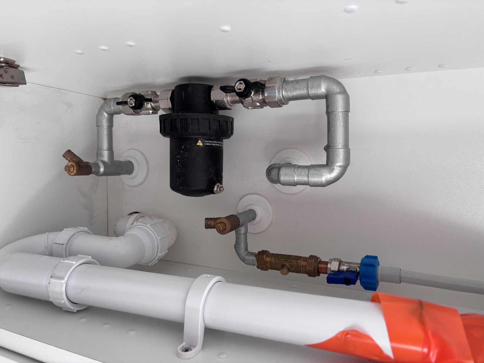 I can hear a constant running water sound from the cupboard next to my washing machine. I live in a 2-bedroom house. The washing machine isolator is off and all visible valves are closed, but the sound continues. No visible leaks. What could this be?