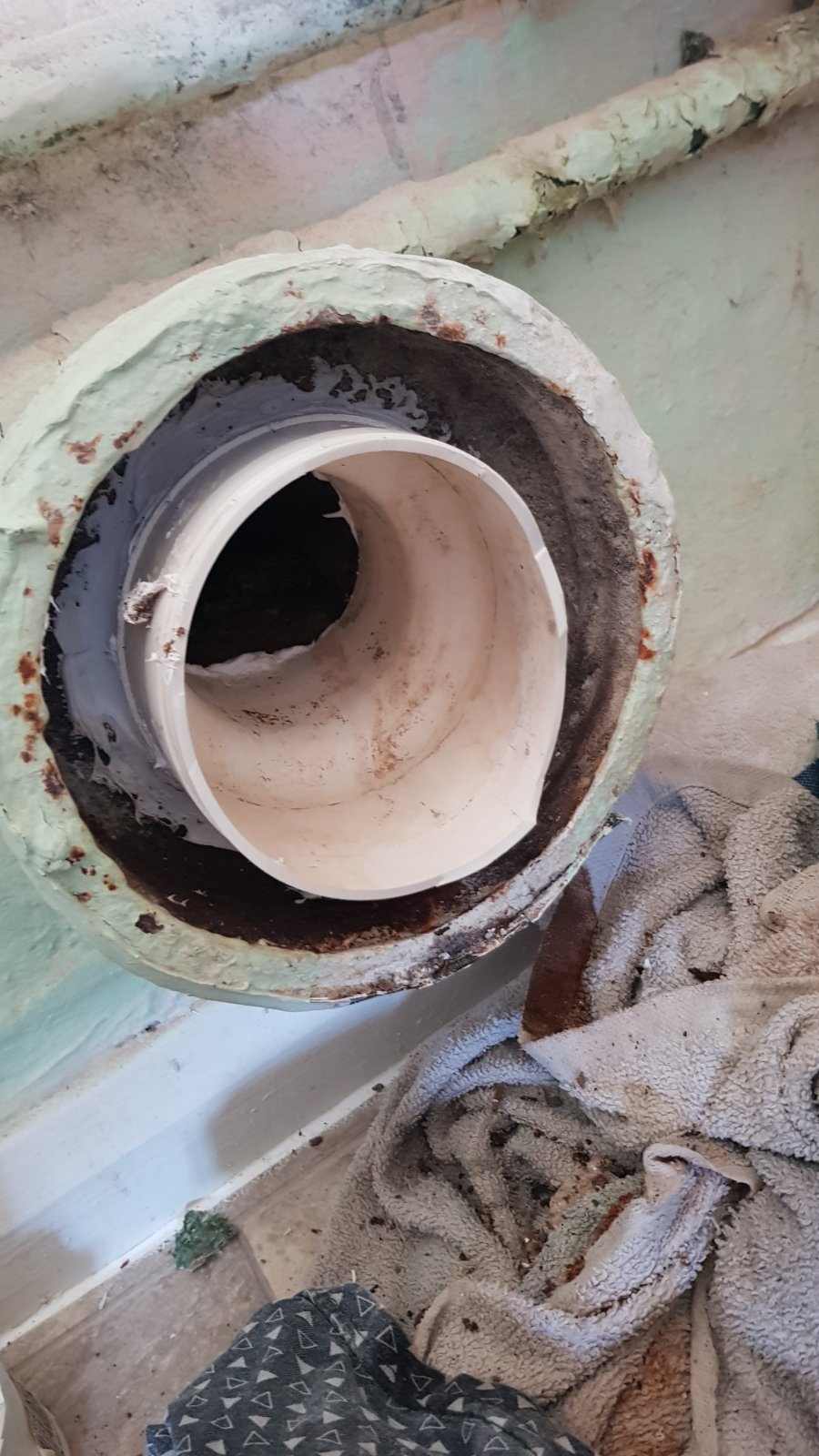 Again ..... what is the fall on the pipe? Measure from the floor to the top of the pipe on the pan spigot and from the floor to the top of the pipe as it enters the cast. What the difference in mm?