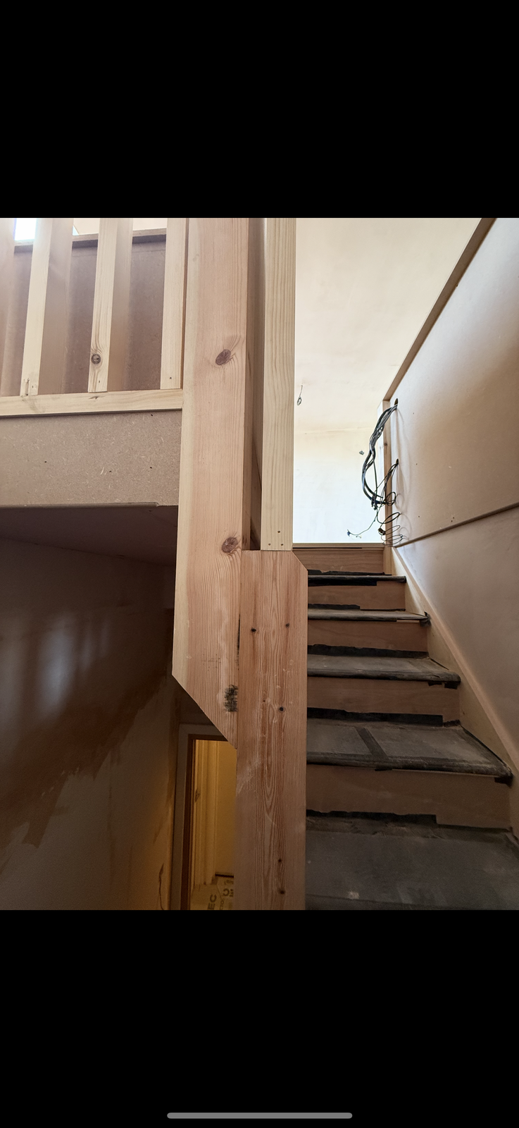 Hello. Really need some advice. This is the stairwell for my new loft conversion. Happy with most of the carpentry except this awful looking “finished” turn in the stairs (first pic) with two uneven bits of wood joined together. To be fair this was to add an additional bit of floorspace upstairs but I can’t believe there isn’t a cleaner solution for it? It will all be painted the same colour but what can I ask my carpenter to do before that to make it look less crap? He says it is finished and will look fine once painted.