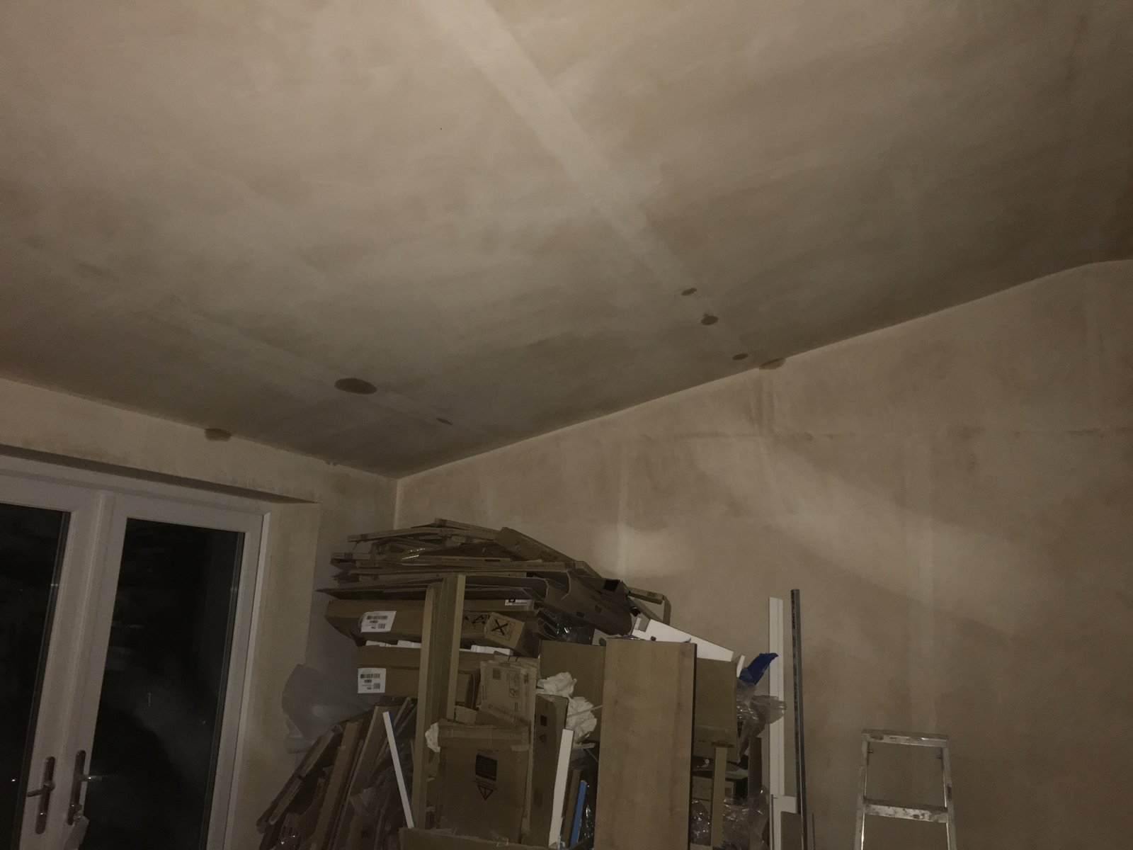 Since I have had the ceiling plastered a small wet patch was keep appearing and then going some times without any rain. This never occurred when the ceiling was boarded its only ever since the plaster was applied.