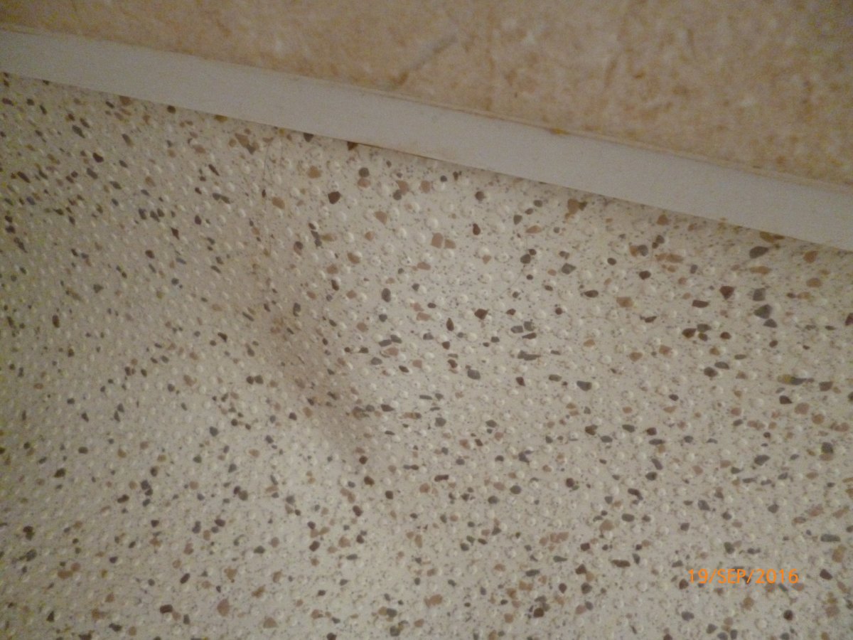 Plaster might of blown when gluing it on. Might not of been rolled up upstands.