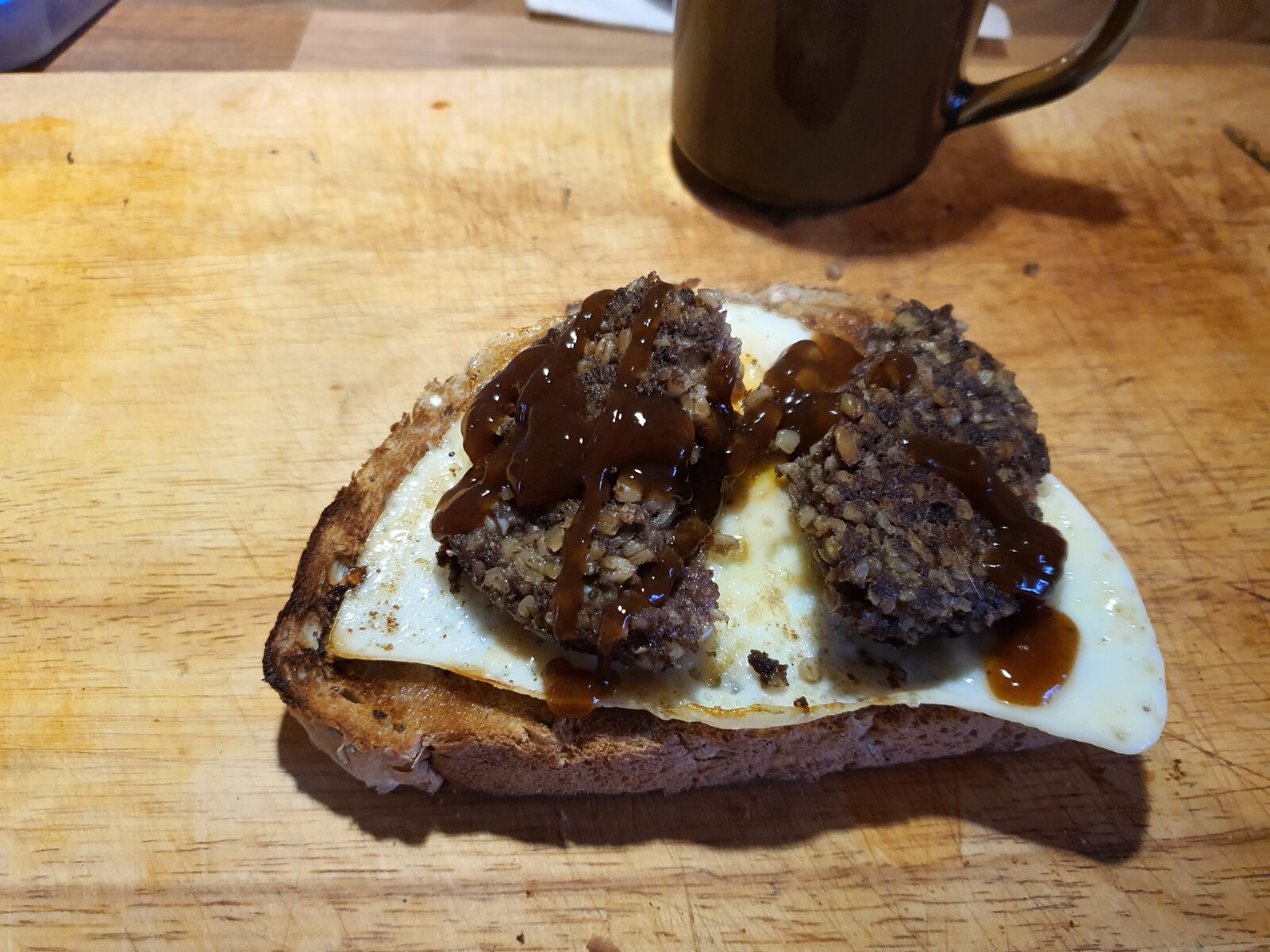 The worst haggis in the world (Lidl) with an egg on toast.