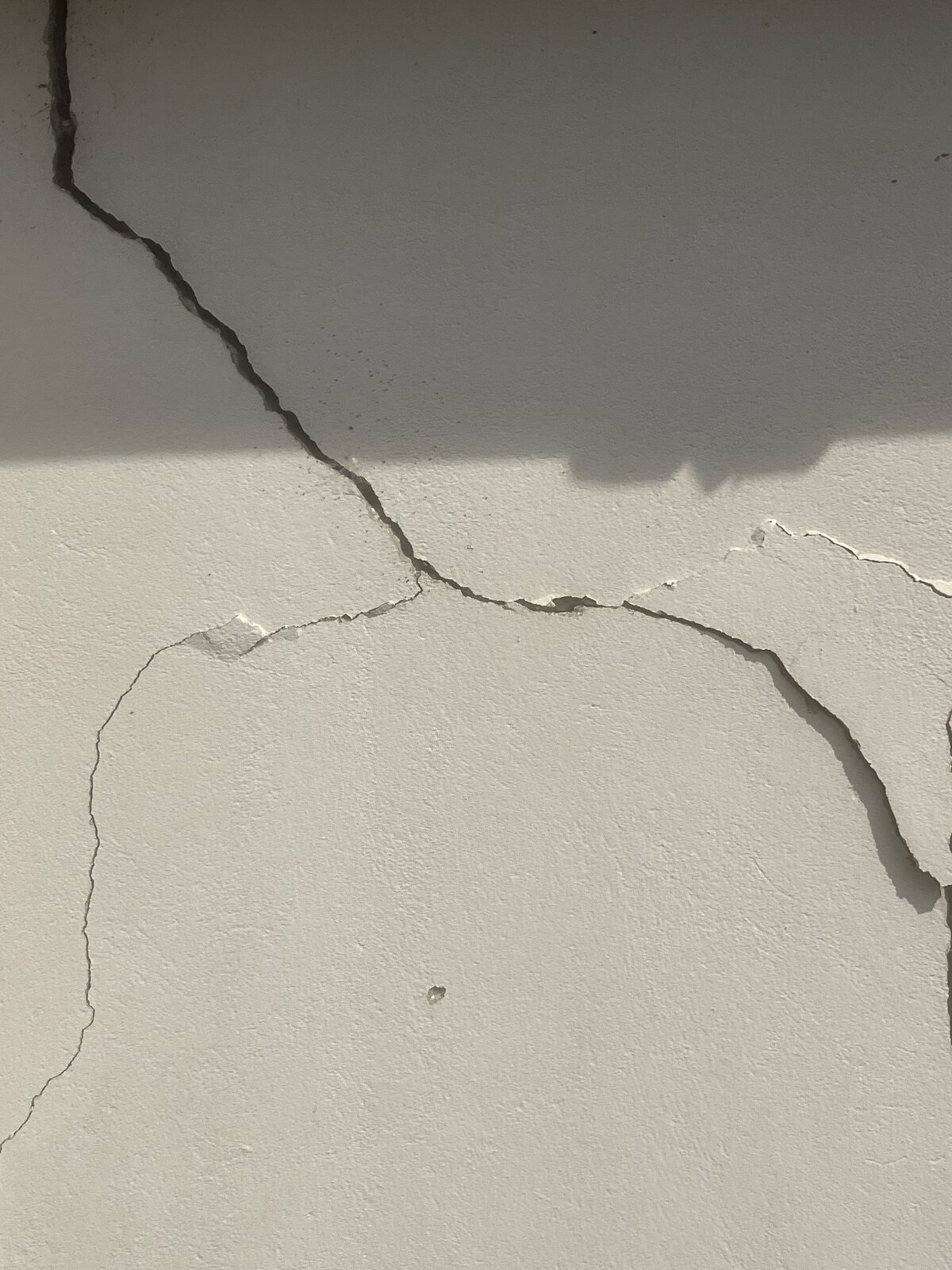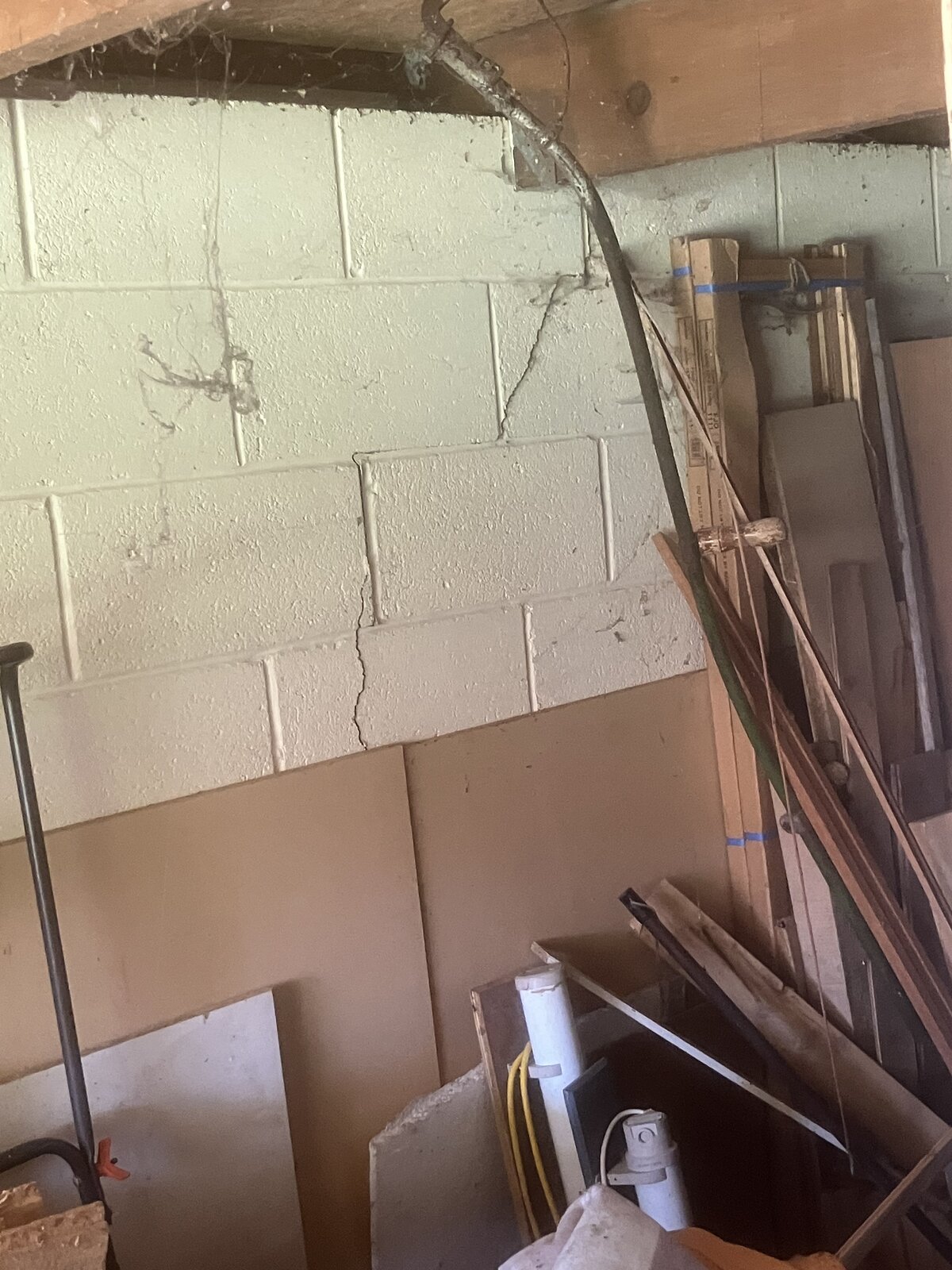 Given the limited scope of the photo's what do you think the cause is? It's a single skin, rendered blockwork garage and this is in the central section between two support pillars.