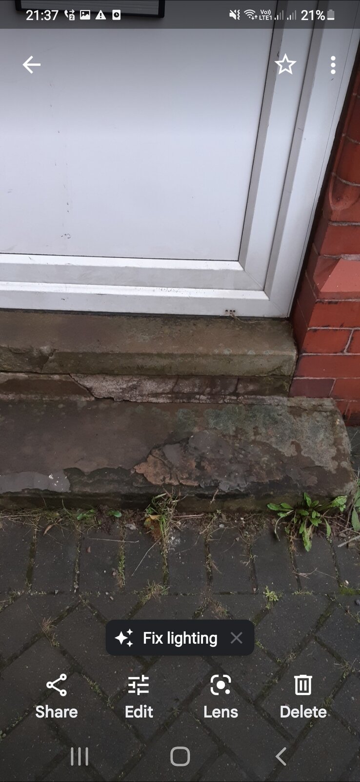 Hi, My doorstep looks a bit cracked, the floor behind is a bit damp.