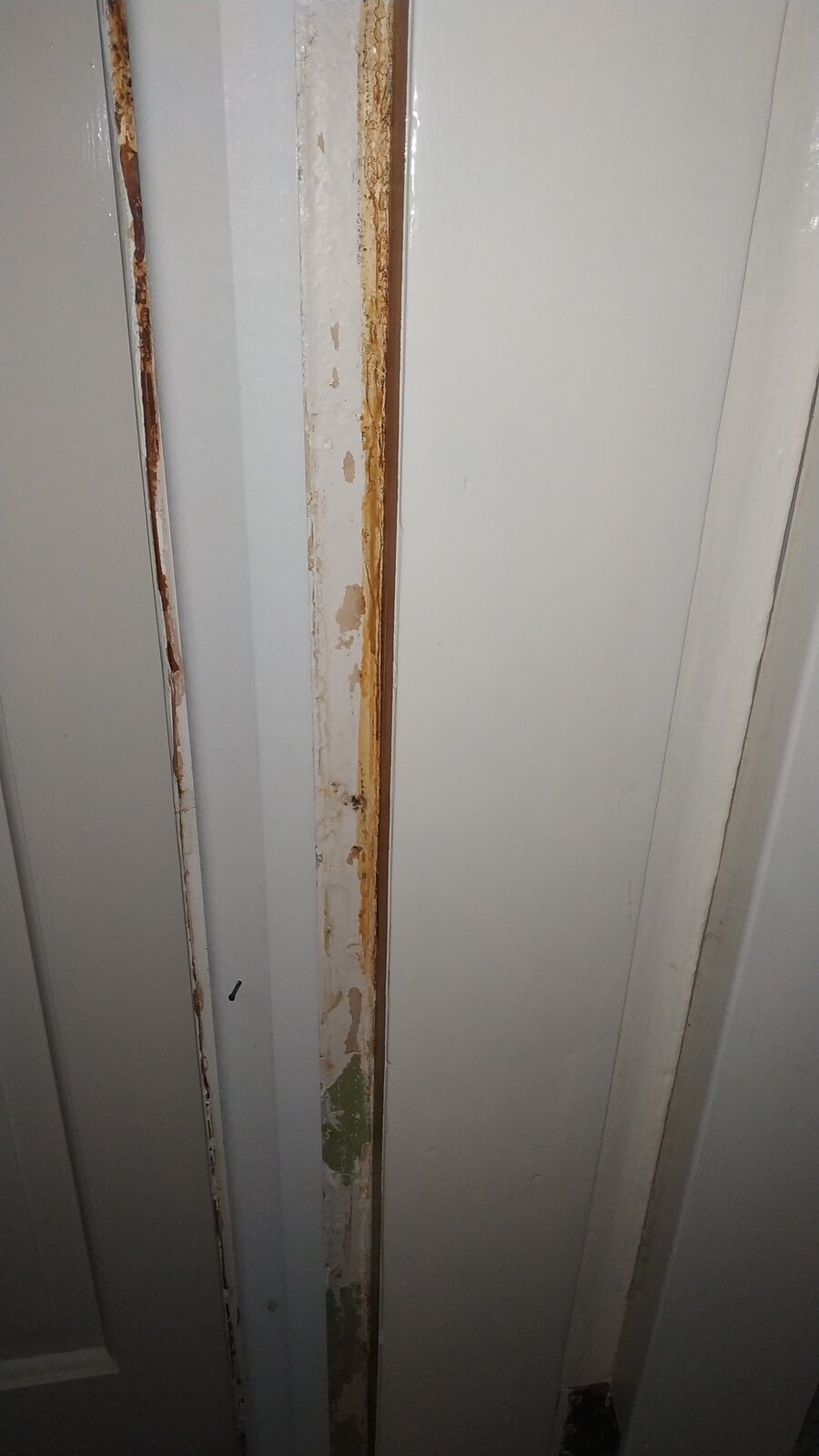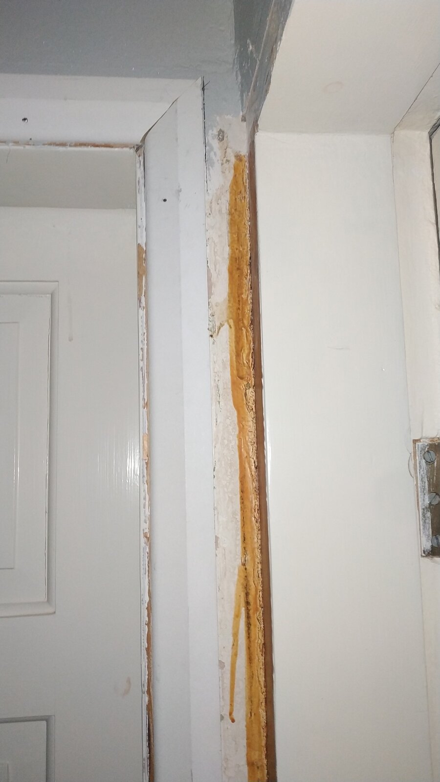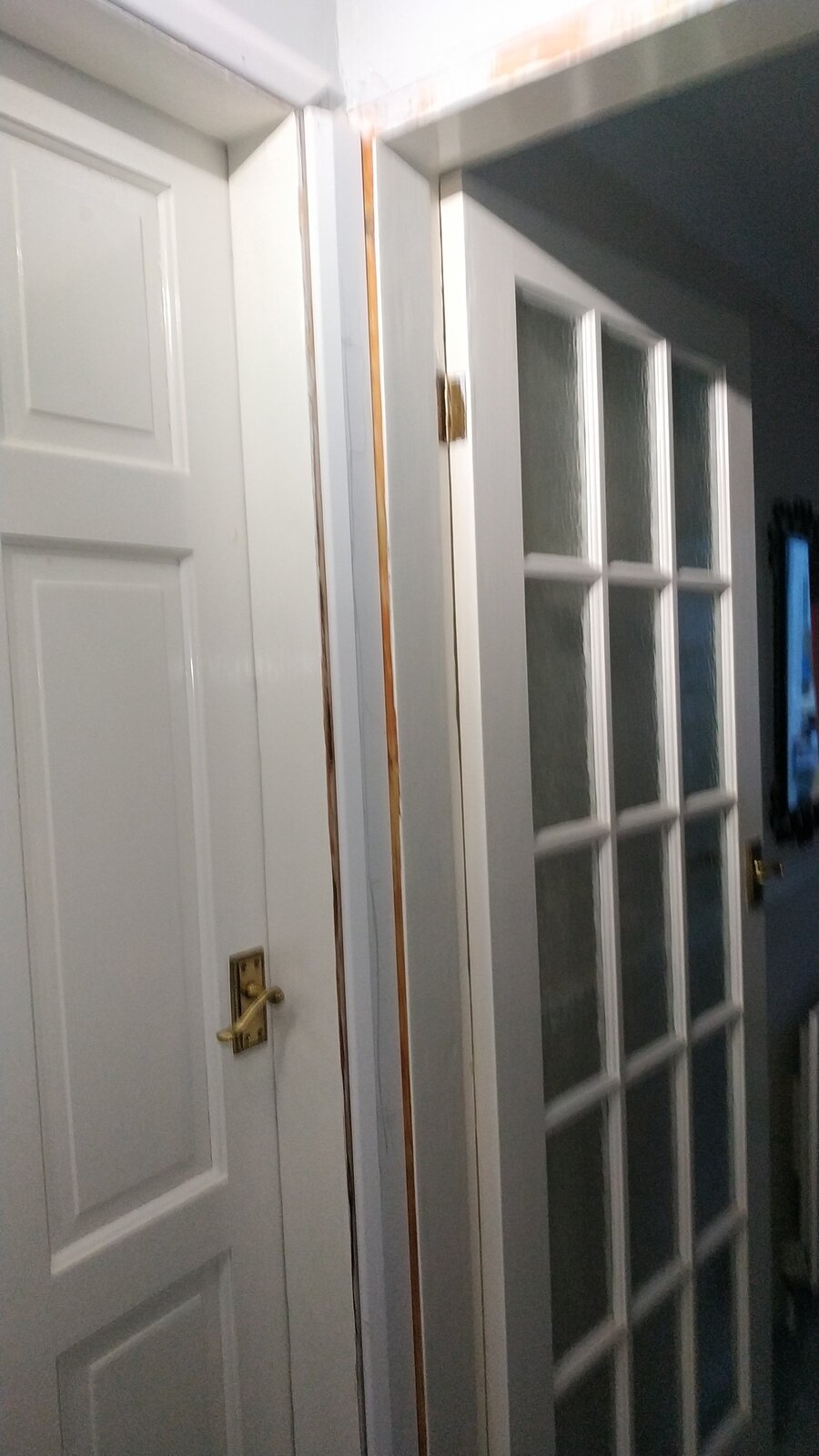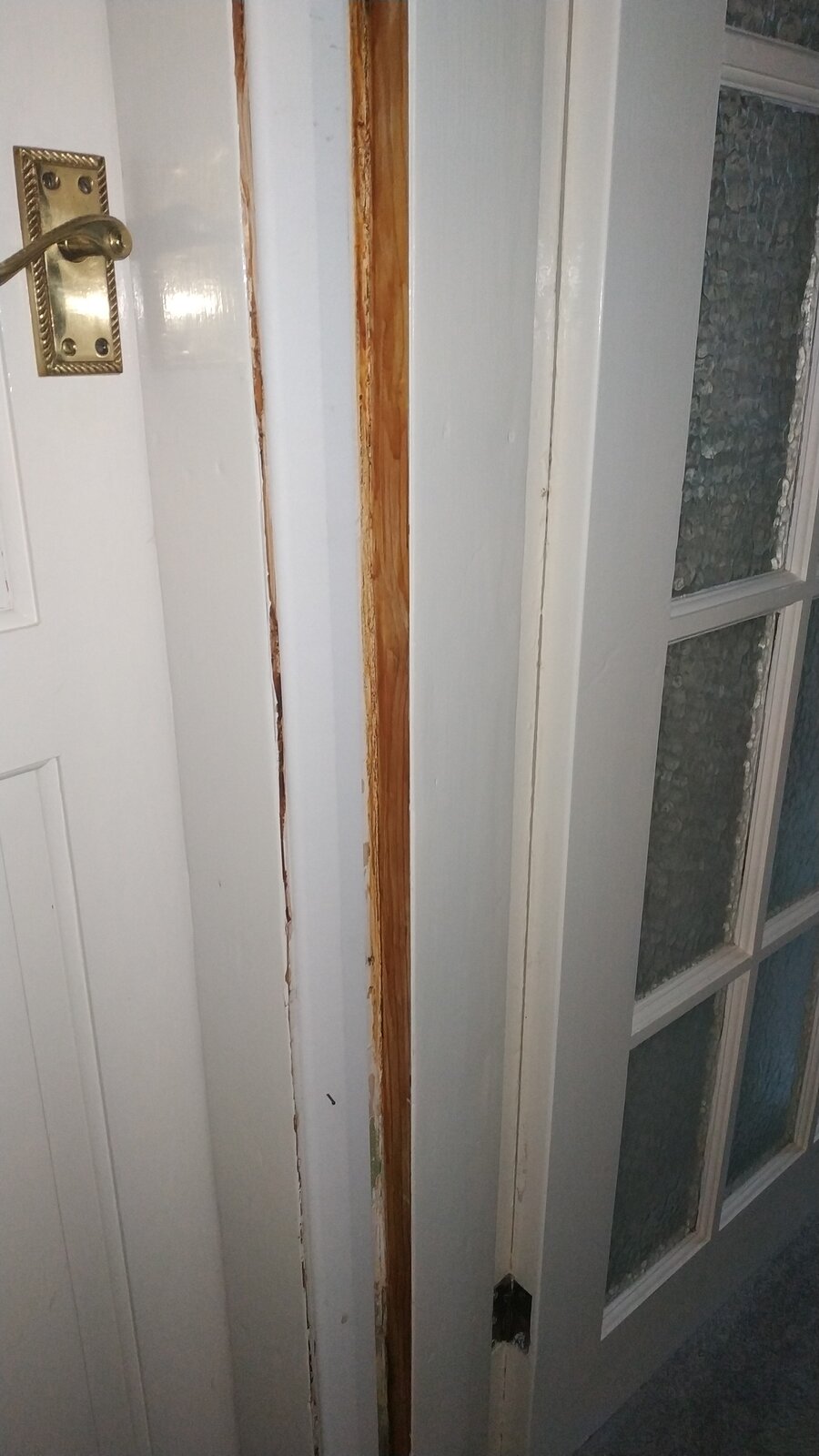 I've been putting up architrave in our 1970's house. I took the old architrave off a few years ago but due to illness have only just been able to put new stuff up. All of the door frames are out of true, but I had no idea this gap was going to be so bad!