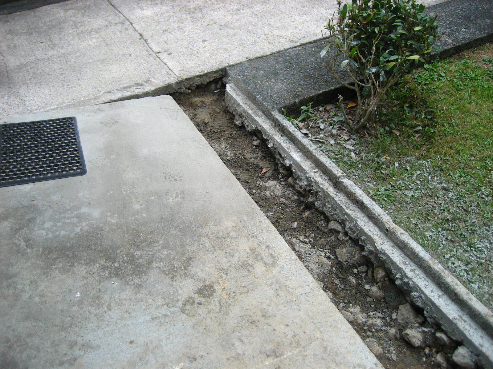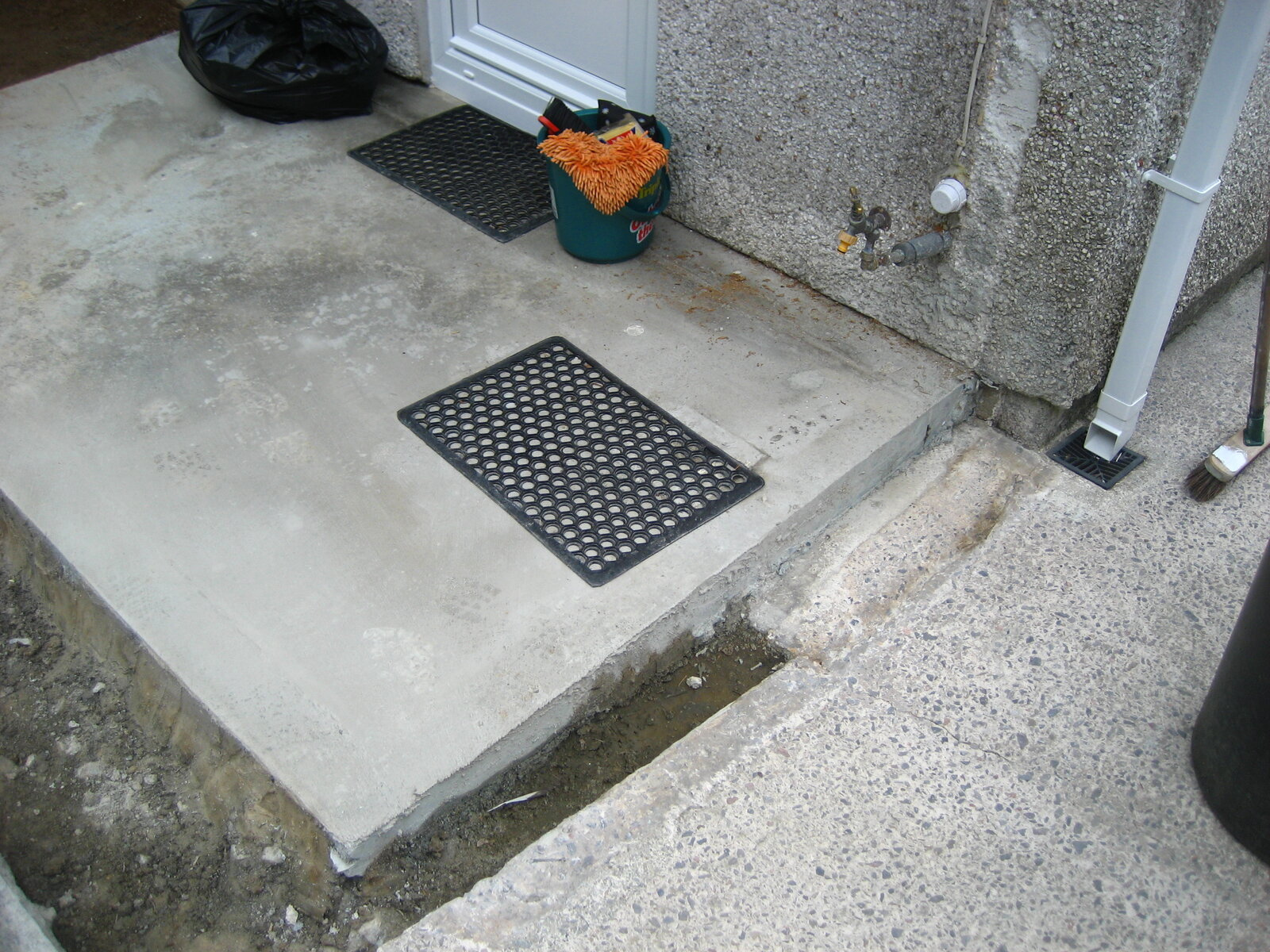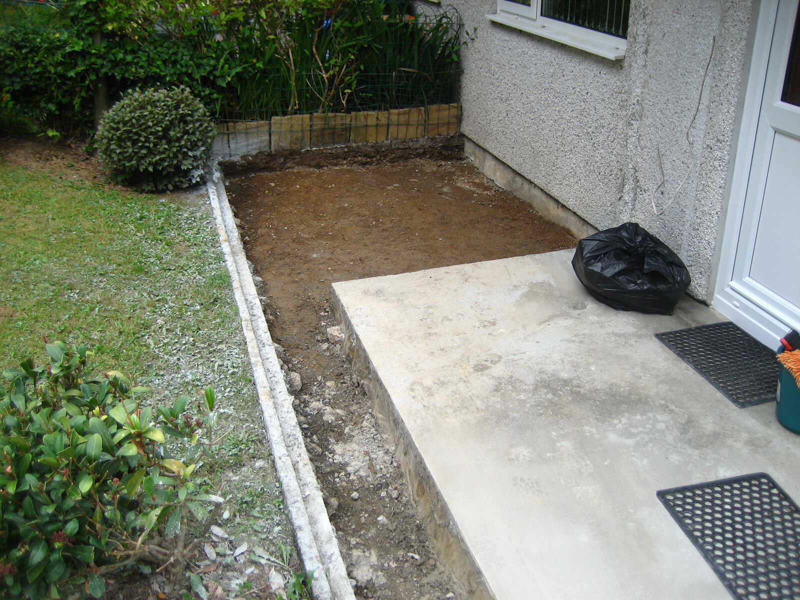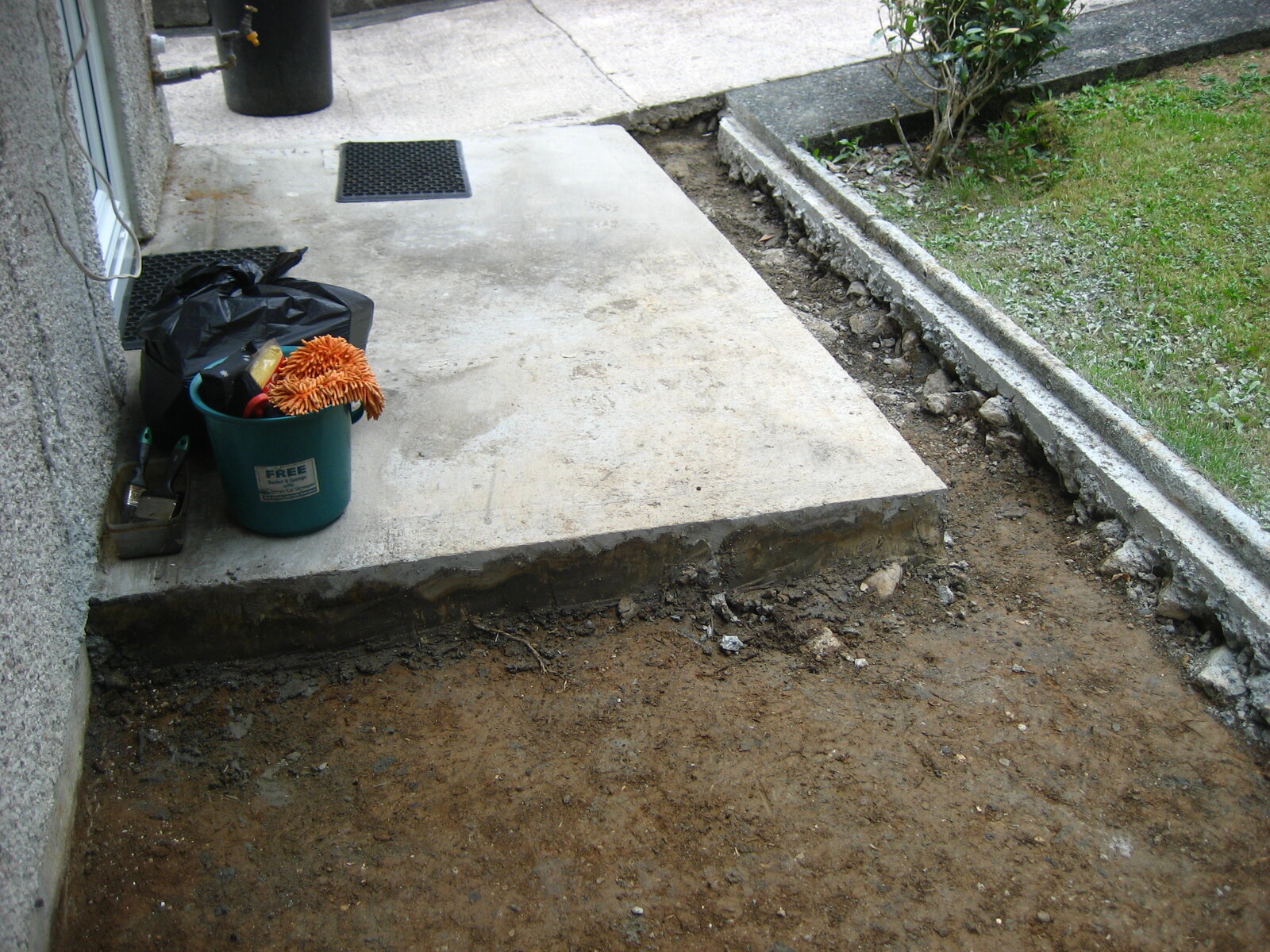 I was advised that this concrete base was no good (it was all concrete including the area that is now just earth). Firstly I was told that we could cut out to the size of the new upvc porch and re-use that. Now, after that was done he told me that this is now no good and it all has to go.......