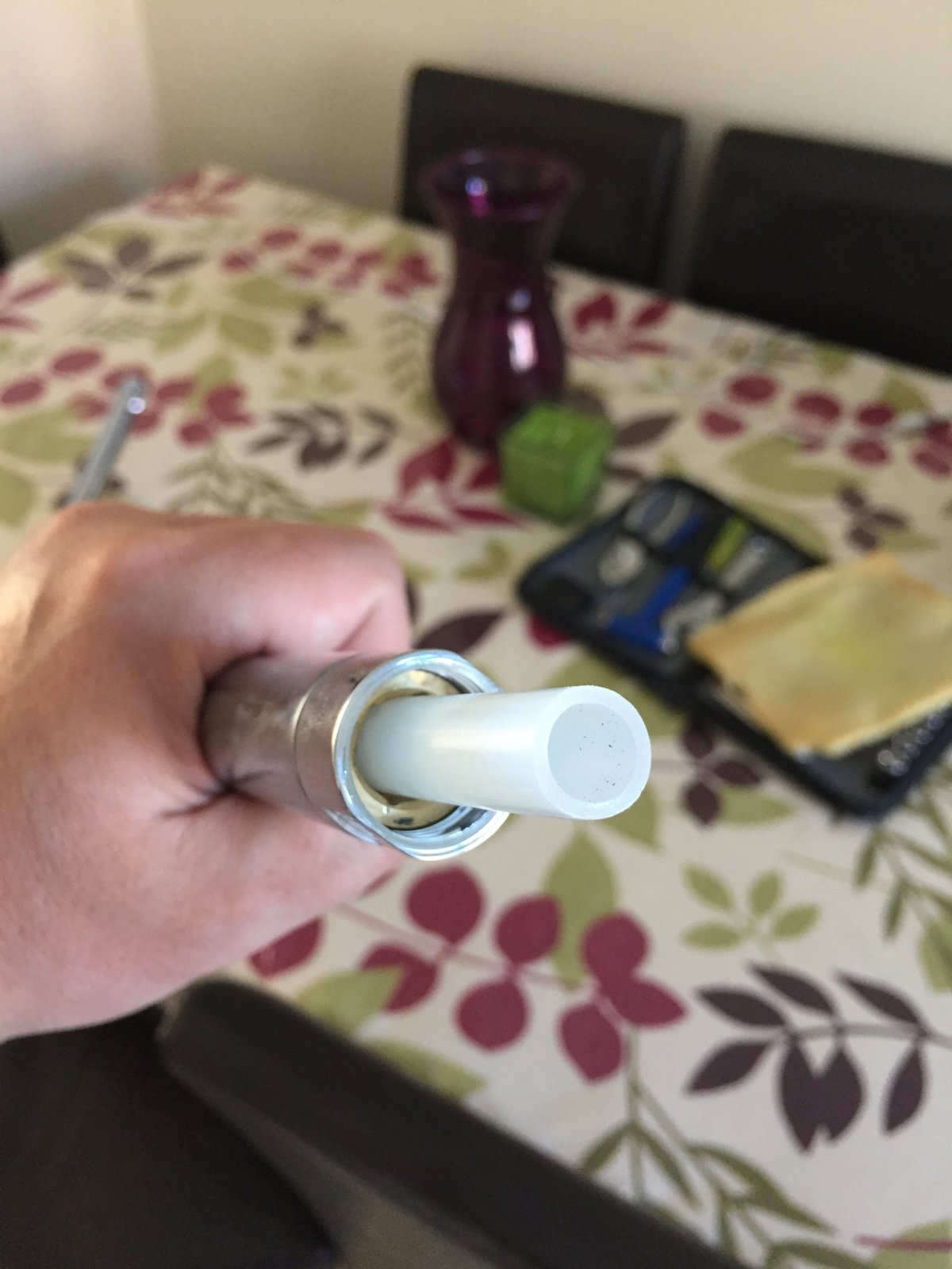This is a new rigid riser rail that was supplied, by the manufacturer, for my shower. The original riser didn't have this inner plastic pipe and used a fibre washer in the joint to the valve.