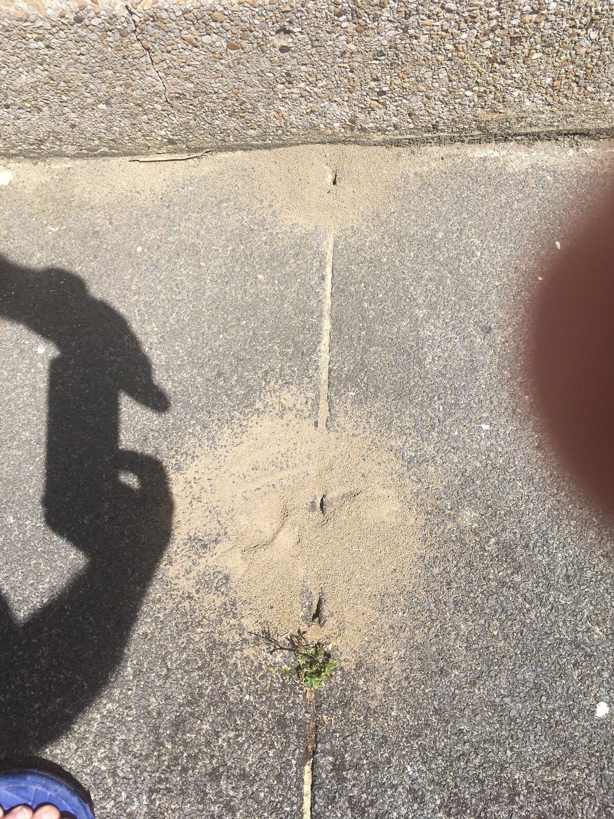 This is directly in front of our front door -Note the two piles of dust around the joint in the slabs. Yes, we have a dog whom we usually let out via the front, in via the back door (don't ask). Usually on her way out she examines the that area, but today I spotted the piles of dust around the joints in the slabs. It is not something she would usually do.
