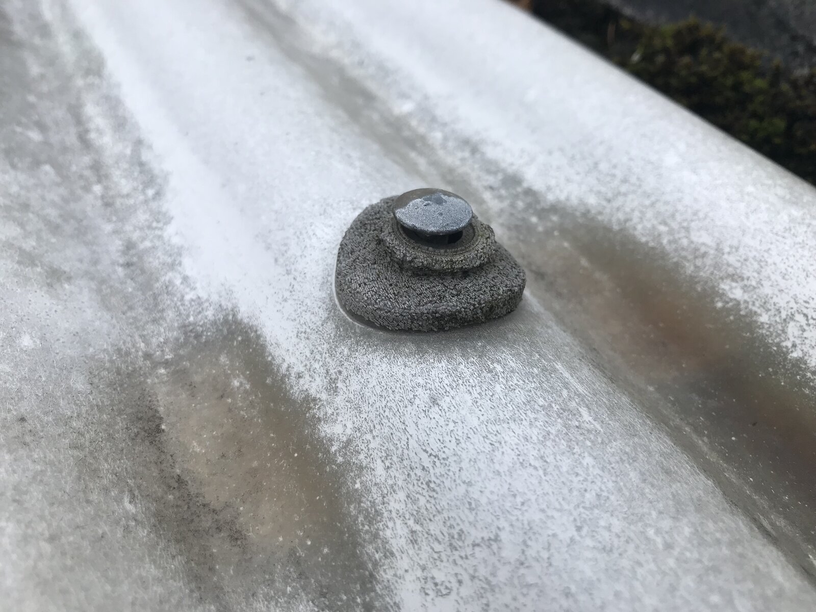 I have a flat garage roof with corrugated cement board (including asbestos) sheets. The original nails have curved washers on them about 30mm diameter that are disintegrating due to age and the nails are working themselves out, they are nailed into wooden purlins.
