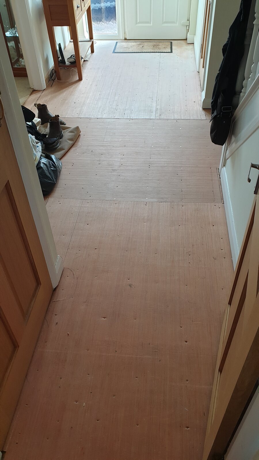 I’ve been working from 10.00 to 5.00 today! Managed to board out our hall as I’m fitting some vinyl laminate click flooring. Still have the kitchen to do. The most time consuming part was getting all the Cat 5e wiring laid downstairs. I bought 10 8’x4’ ply boards and I asked how many screws I’d need. They said one box so I ordered two to be on the safe side. I’ve only laid three boards and I’ve used a box and a half of screws already. Maybe I’m using too many?