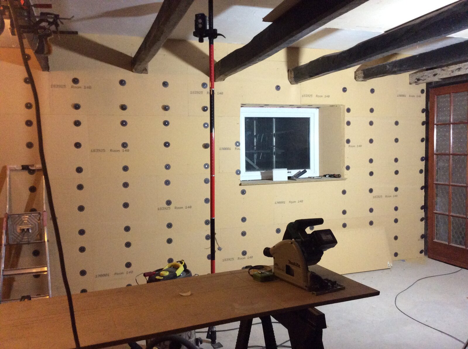 Getting on with fixing wood fibre insulation on the walls ready to lime plaster.