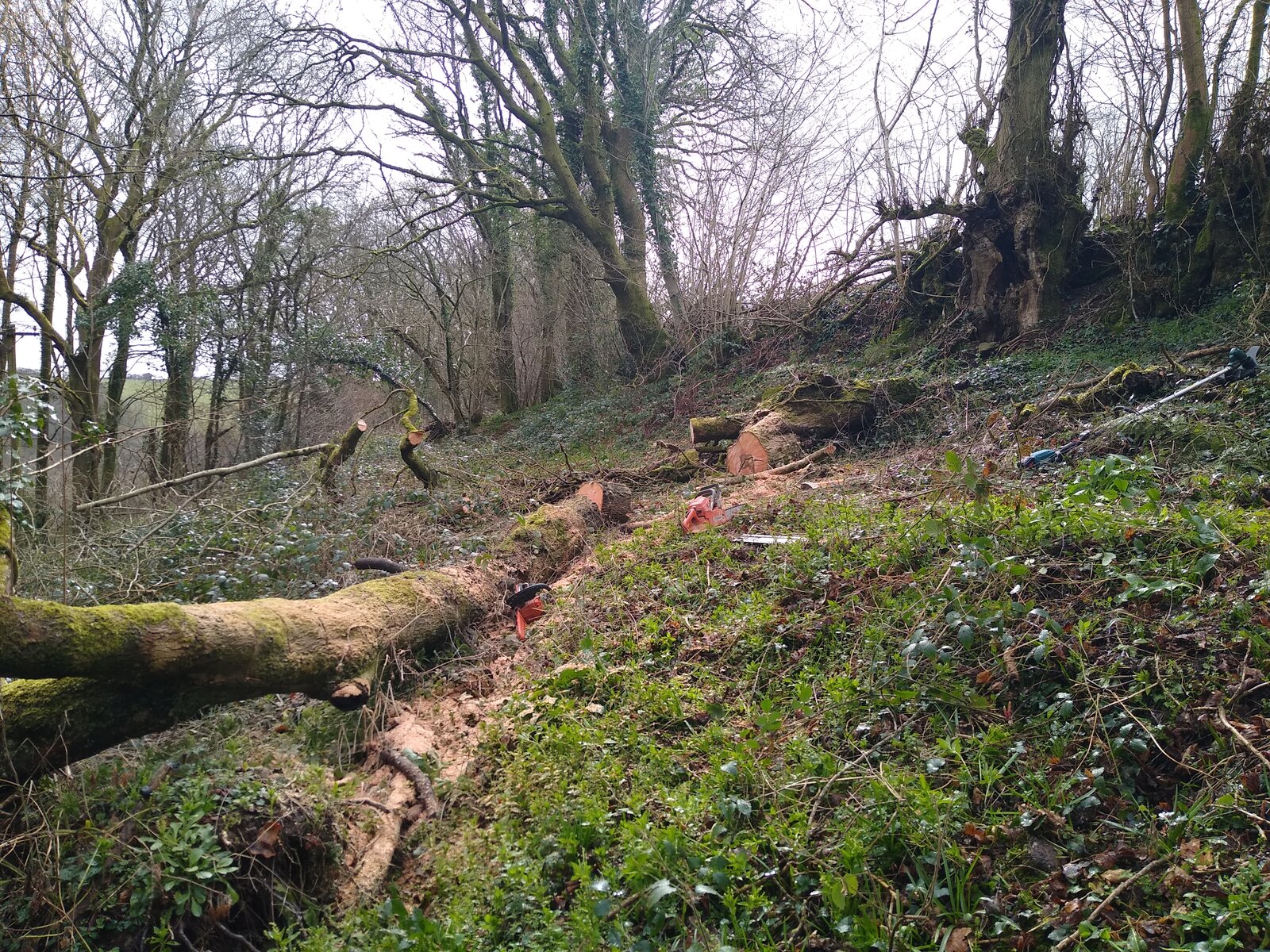 Mowing the 4 metre strip we look after belonging to the meadow next door. Now sitting down with a beer.