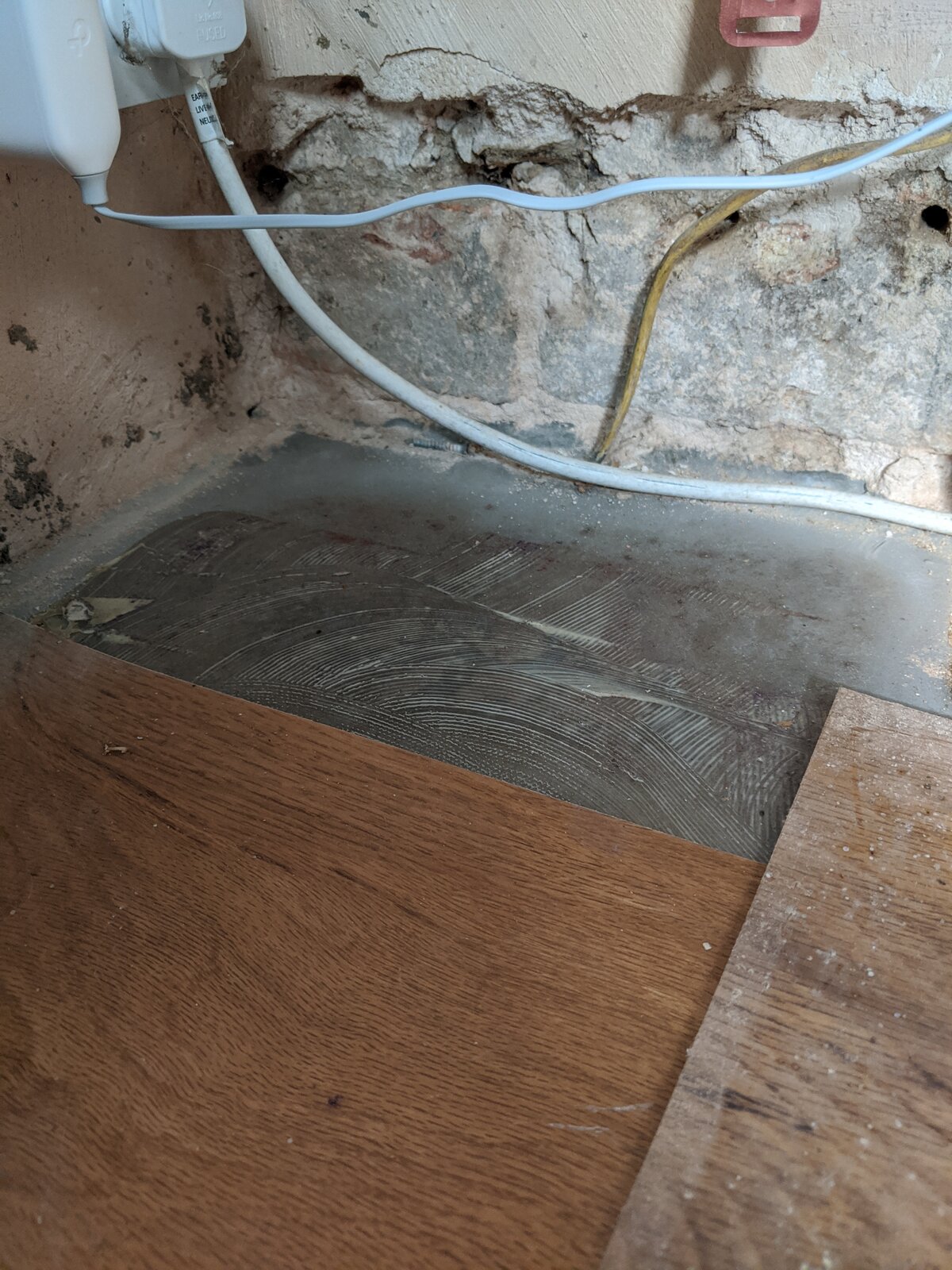 Nah no grey dust, some pretty clean scores. Went into the cupboard and pulled up a board and it looks like so in the corner. It's a continuation of the flooring from the main area