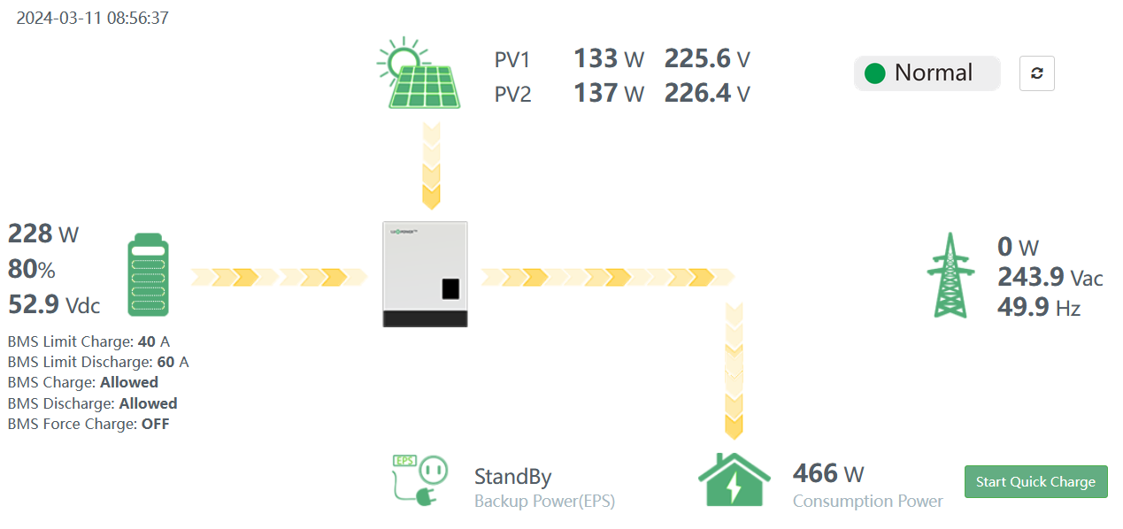 from my IHD, it can't show what I am generating, storing, and using like the solar software, but it could show same as the app does but up to date.