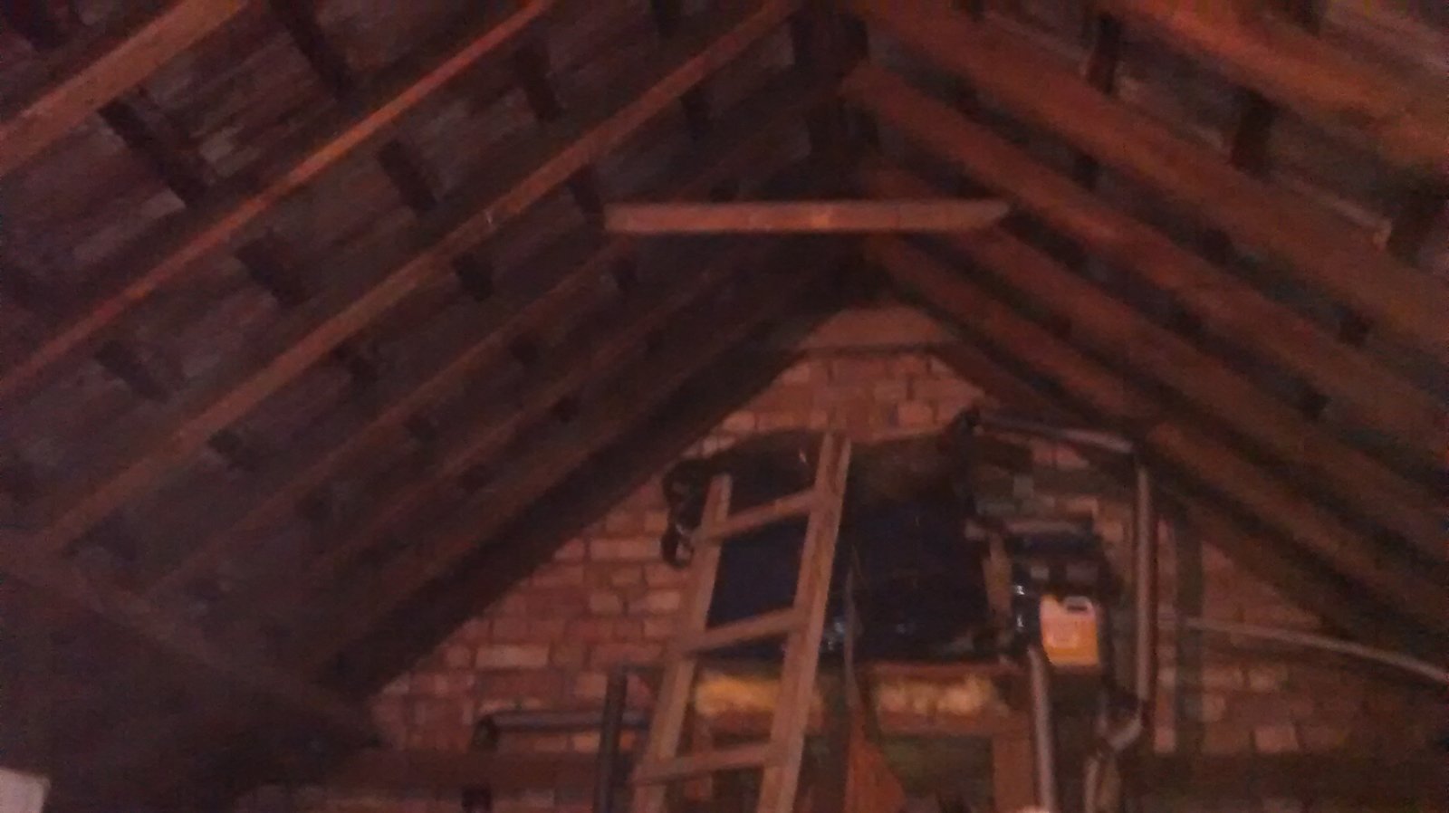 My loft is old. It has 4 antennae in it, along with this weird thing - a cable runs from the eaves up to the bit of suspended wood, and that's it. What is it? Why?