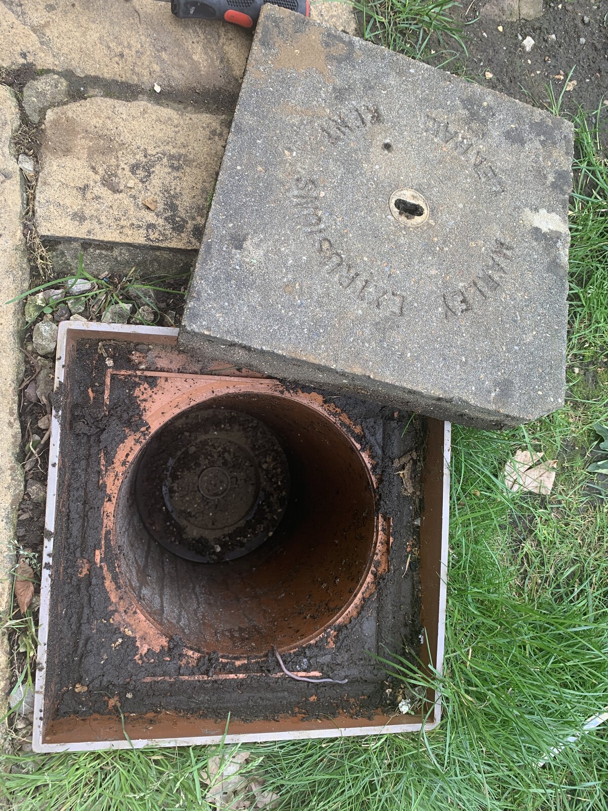 It looks like some kind of inspection chamber but it appears to be completely sealed. Does anybody know what it is or whether I can cover it up with a patio slab?
