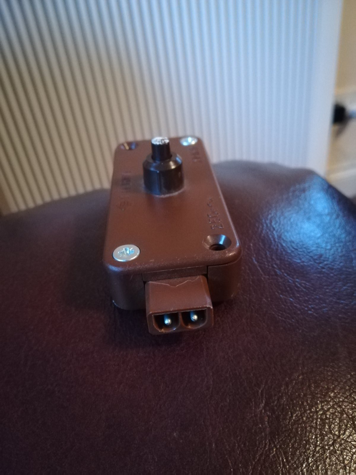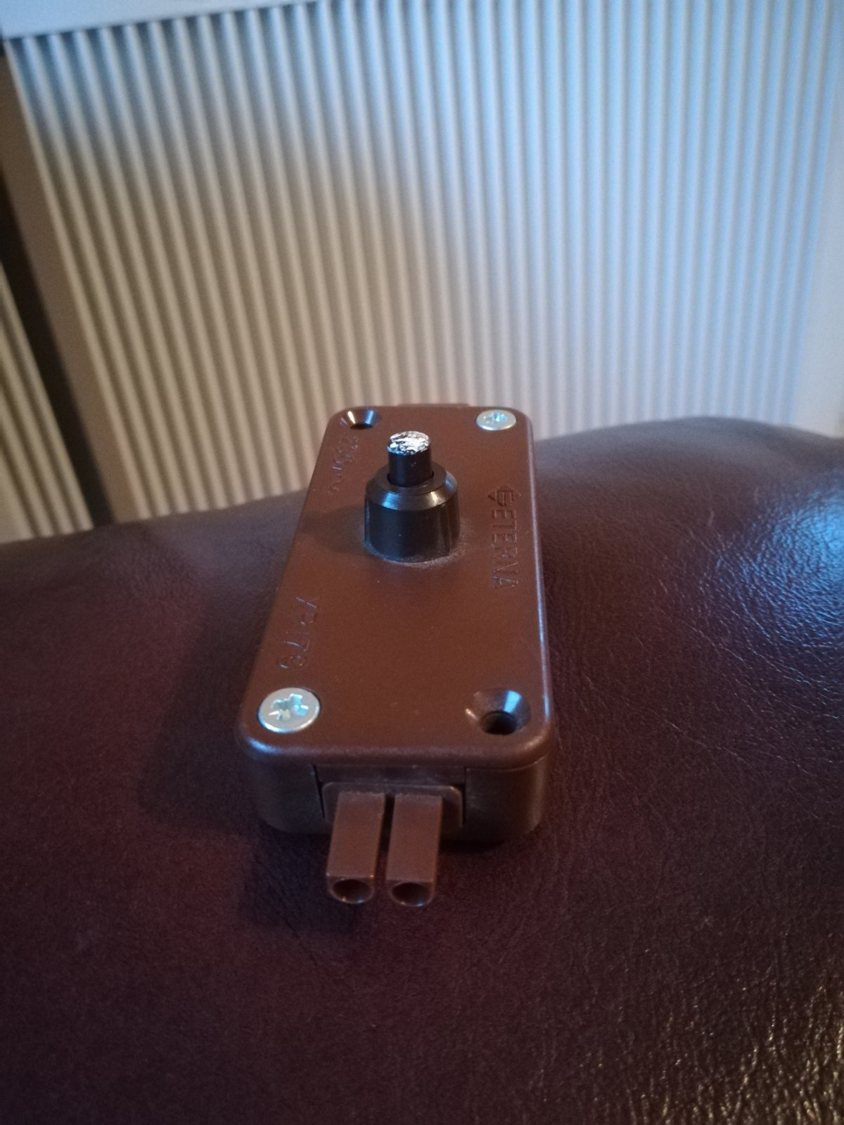Just bought an old display cabinet that has a couple of bulbs in it. They're connected to a wire that comes out the back and then connects to a switch (pictured).