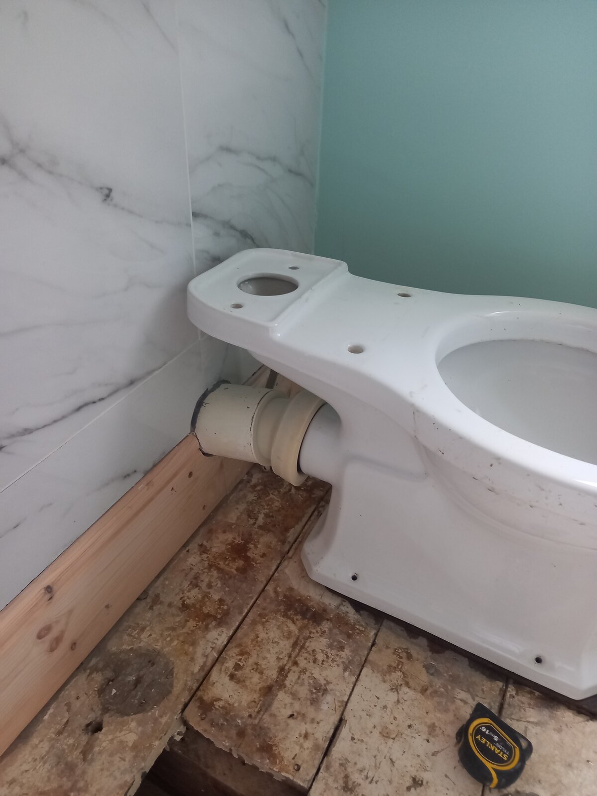 I've added tiles to the wall, setting the pan out an extra 20mm and now current connector is not suitable.