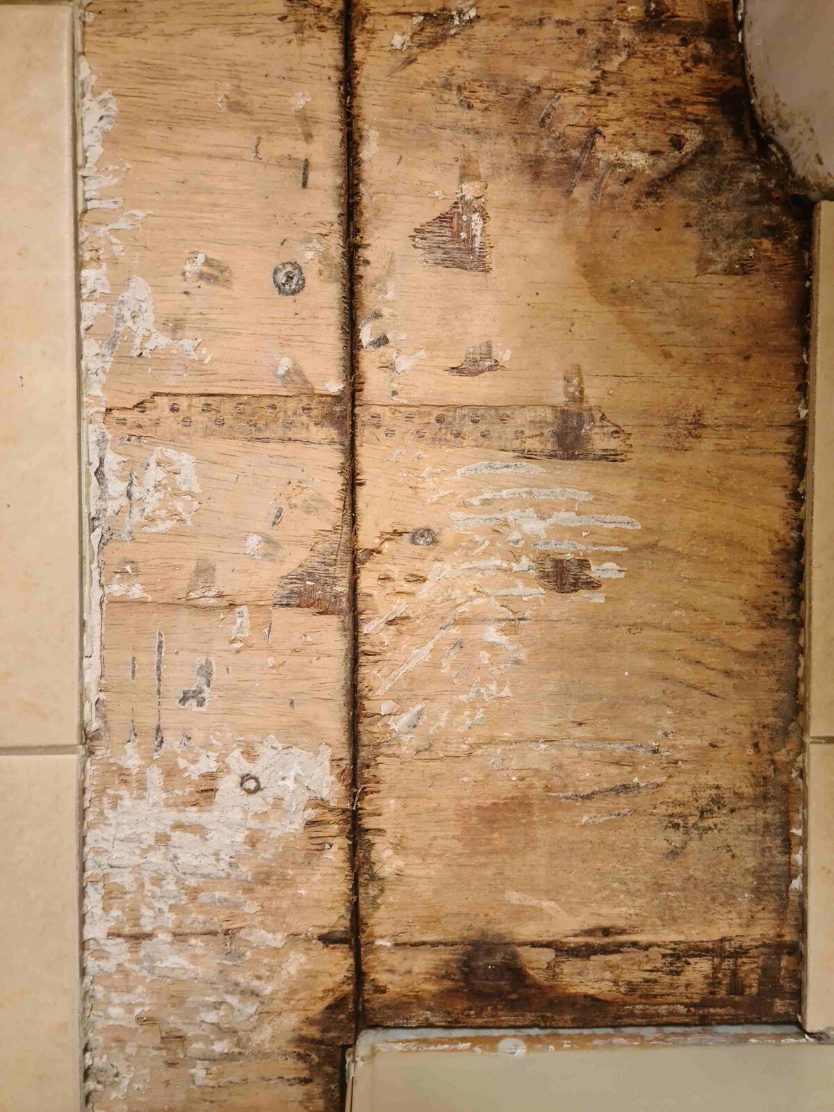 I've taken the tiles up and realised there's a gap between the plywood that matches the crack (see photo). Is there anything I can use to fill that gap before replacing these tiles?