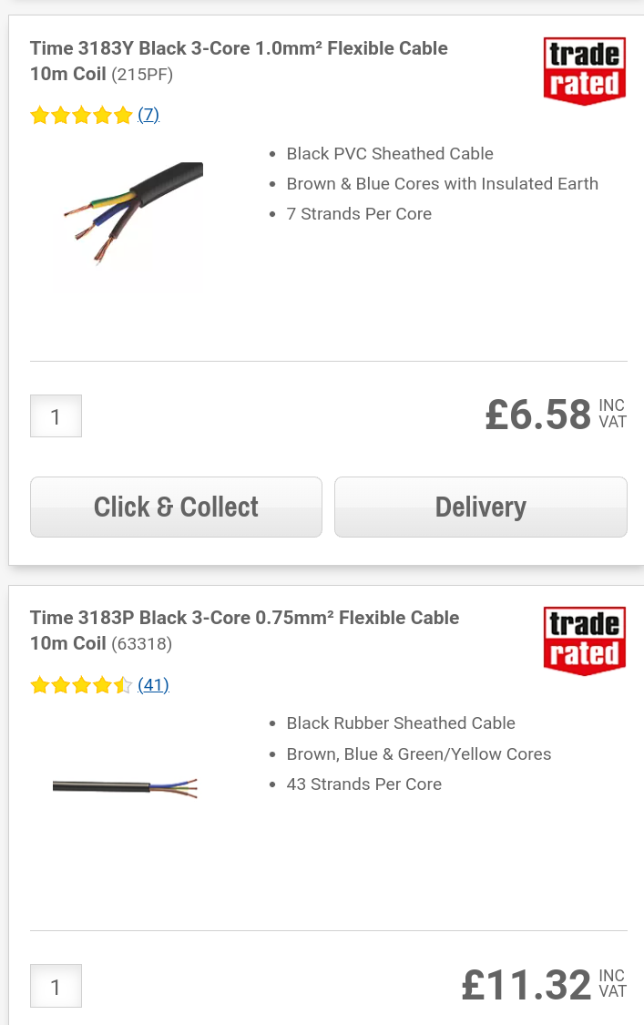 @RandomGrinch oddly Screwfix sell the 1mm cable cheaper than the 0.75mm cable