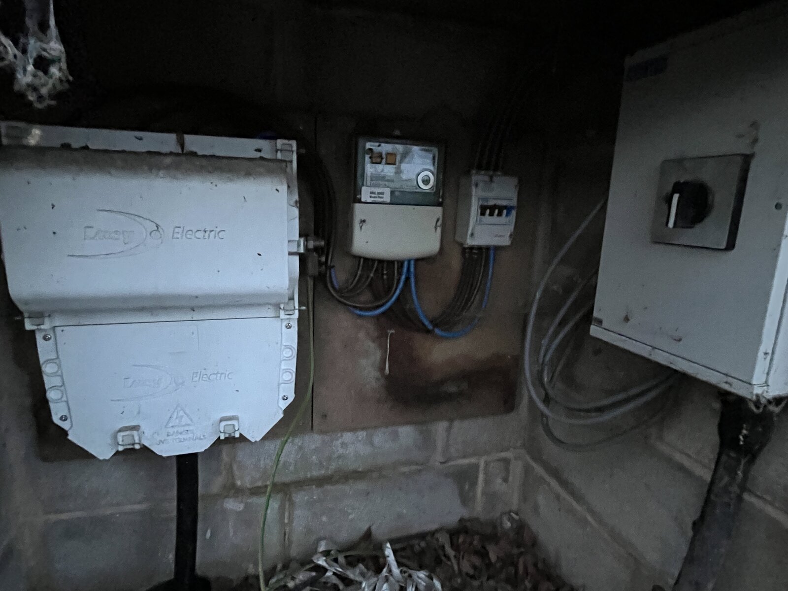 My initial concnern was that I could not see an earth connection on the distribution board in the warehouse unit, and I could see an earth cable coming off the grid supply in the meter cabinet, but it is NOT connected to anything, and by the looks of it, never was.