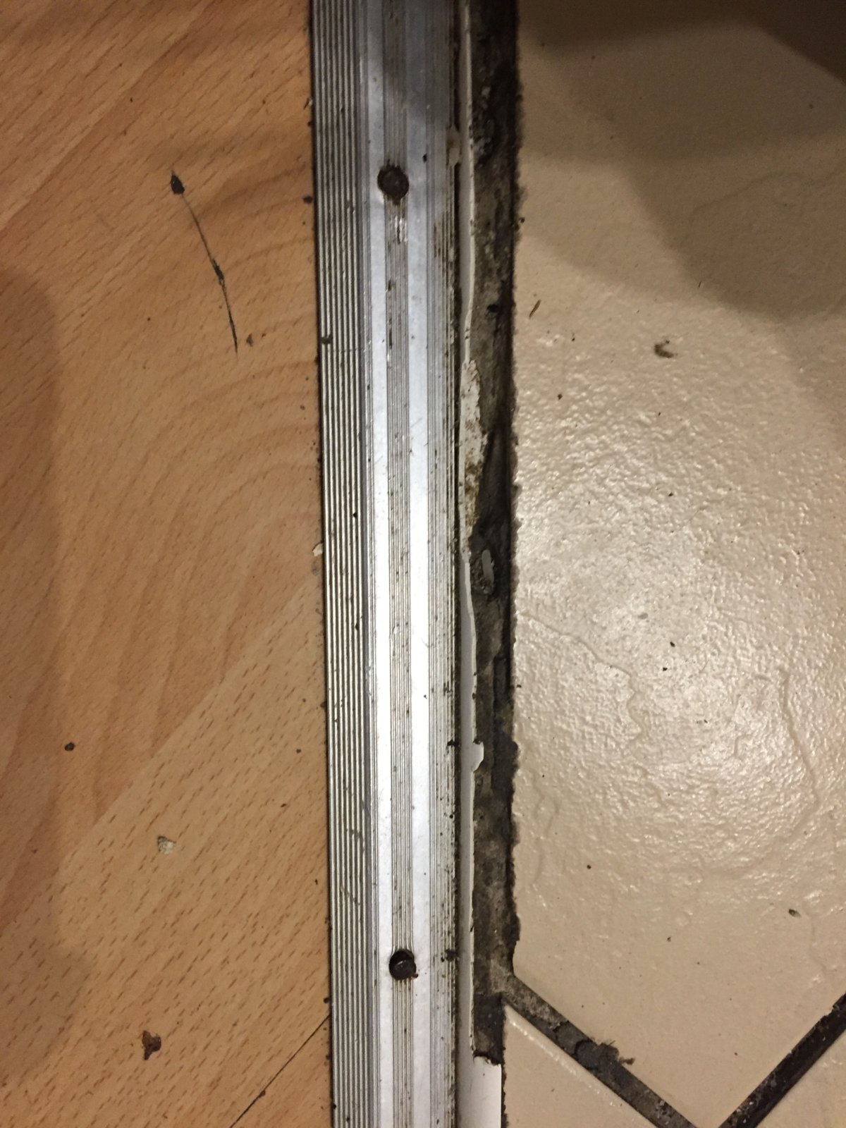 hi, What sort of strip is best to join a slightly higher tiled floor with a tile edge strip that is partially broken to a laminate as in pic ?