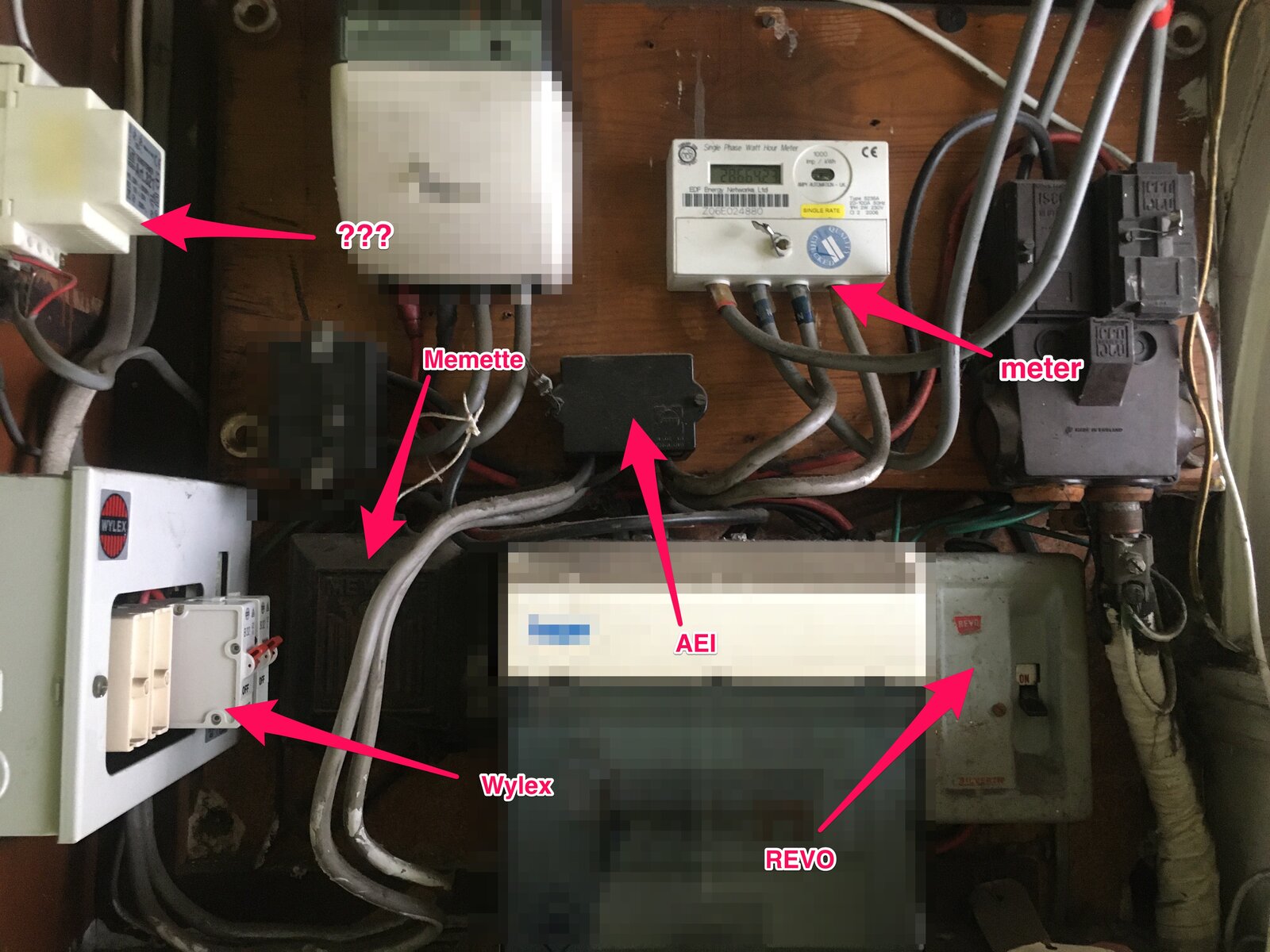 I’m just starting to make sense of the electrical system in my new place. The flat is 1900 and it has been upgraded bits by bits over the years. While most of the cables seems to be okay (PVC insulated, with a mixture of old red/black wires and blue/blown wires), the fuse box is a huge mess.
