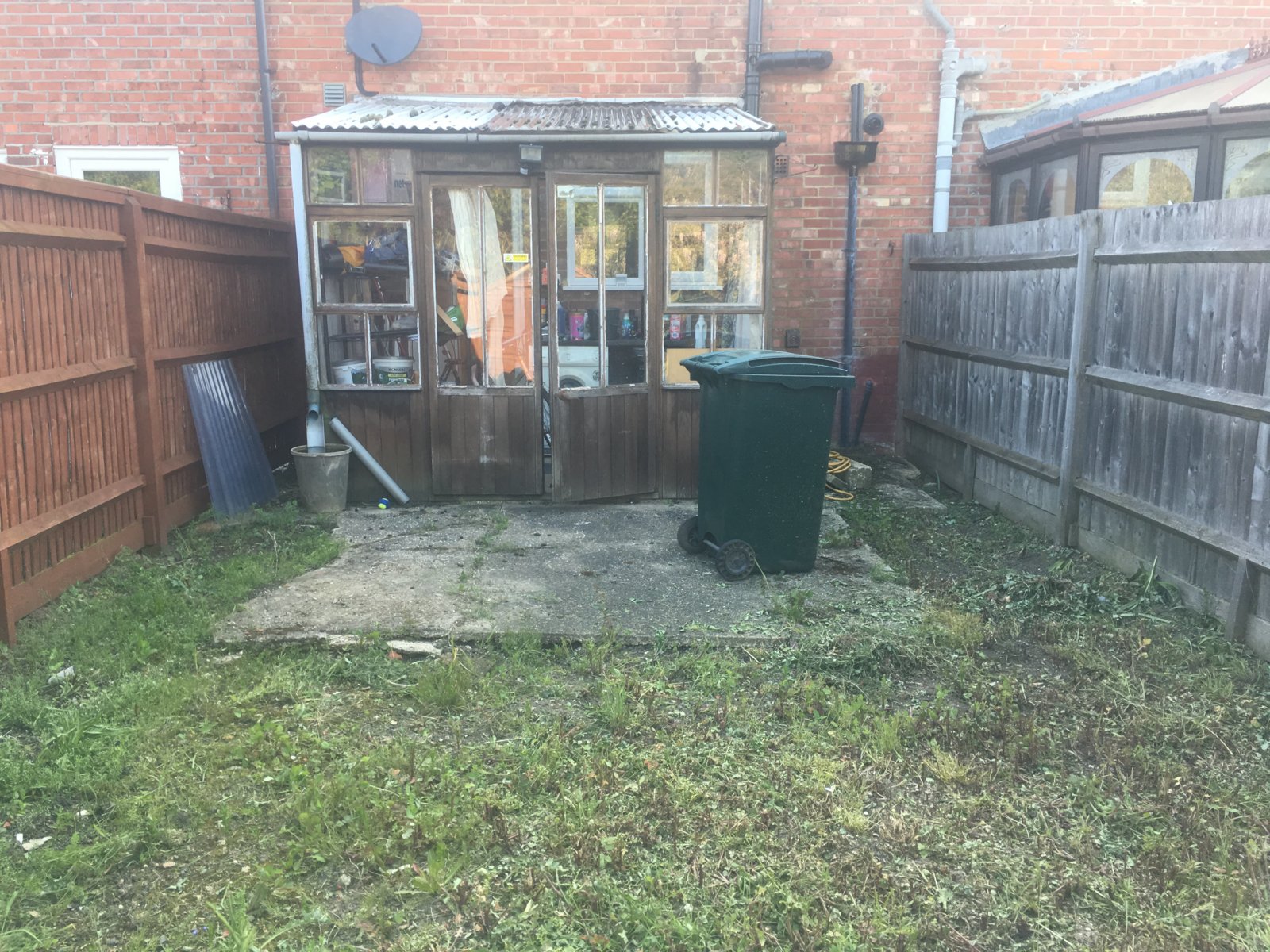 Depending on cost I would consider knocking down the lean-to and creating a patio.
