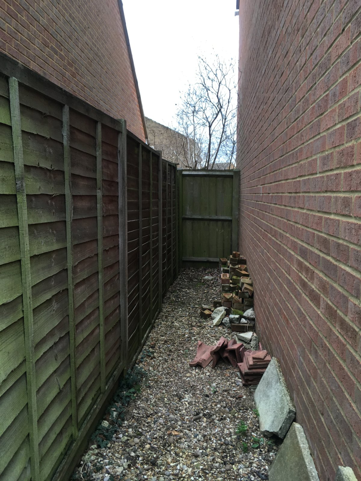 We have pretty pathetic storage options for our garden paraphernalia and am looking at the idea of converting our spare side passageway (we have two) into some sort of storage area. Please see attached image.