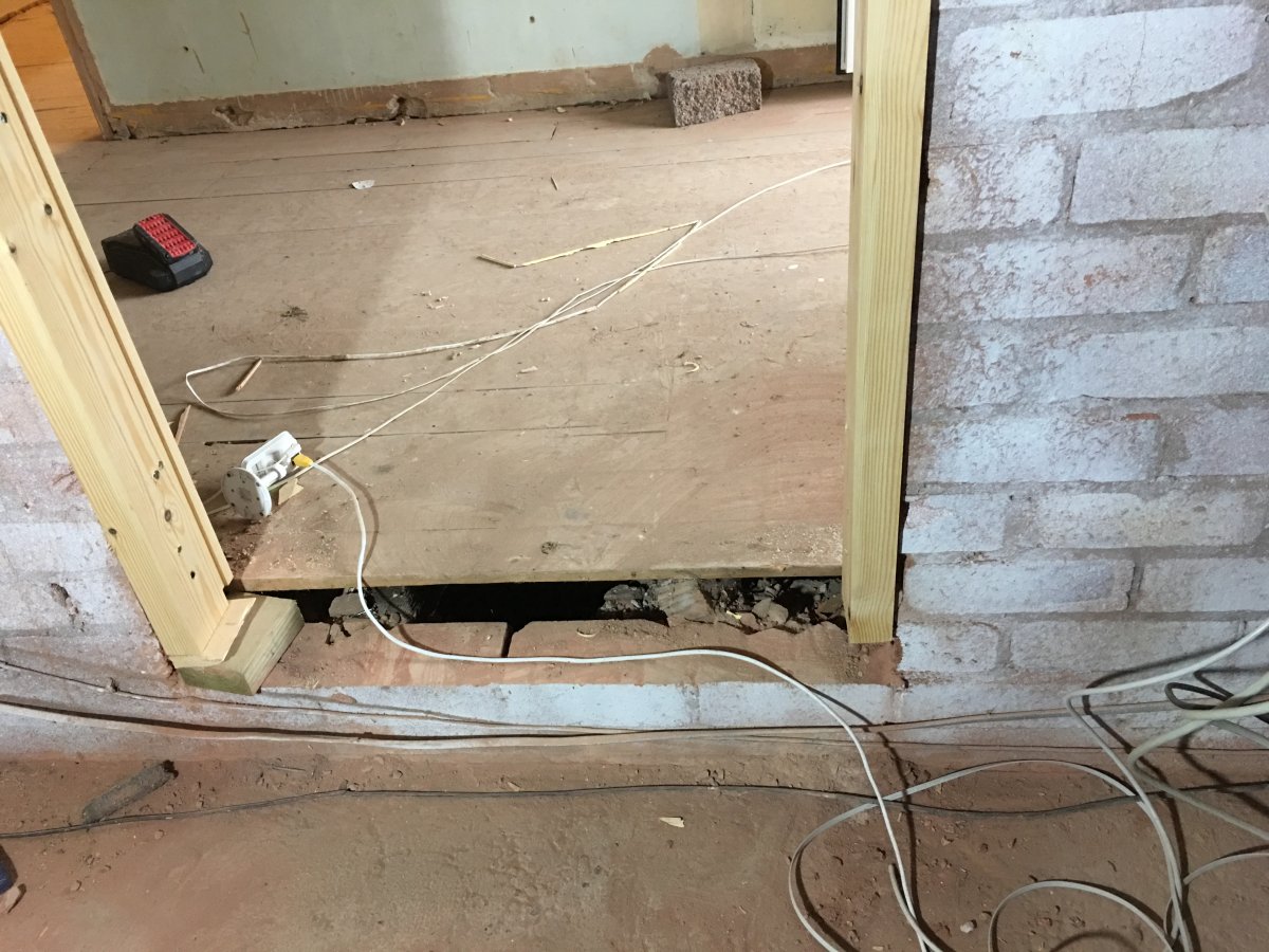 i have created a opening into the garage. And when we put door frame up had to remove a course of bricks to allow the door frame to reach floor level(it was half a course above floor level.