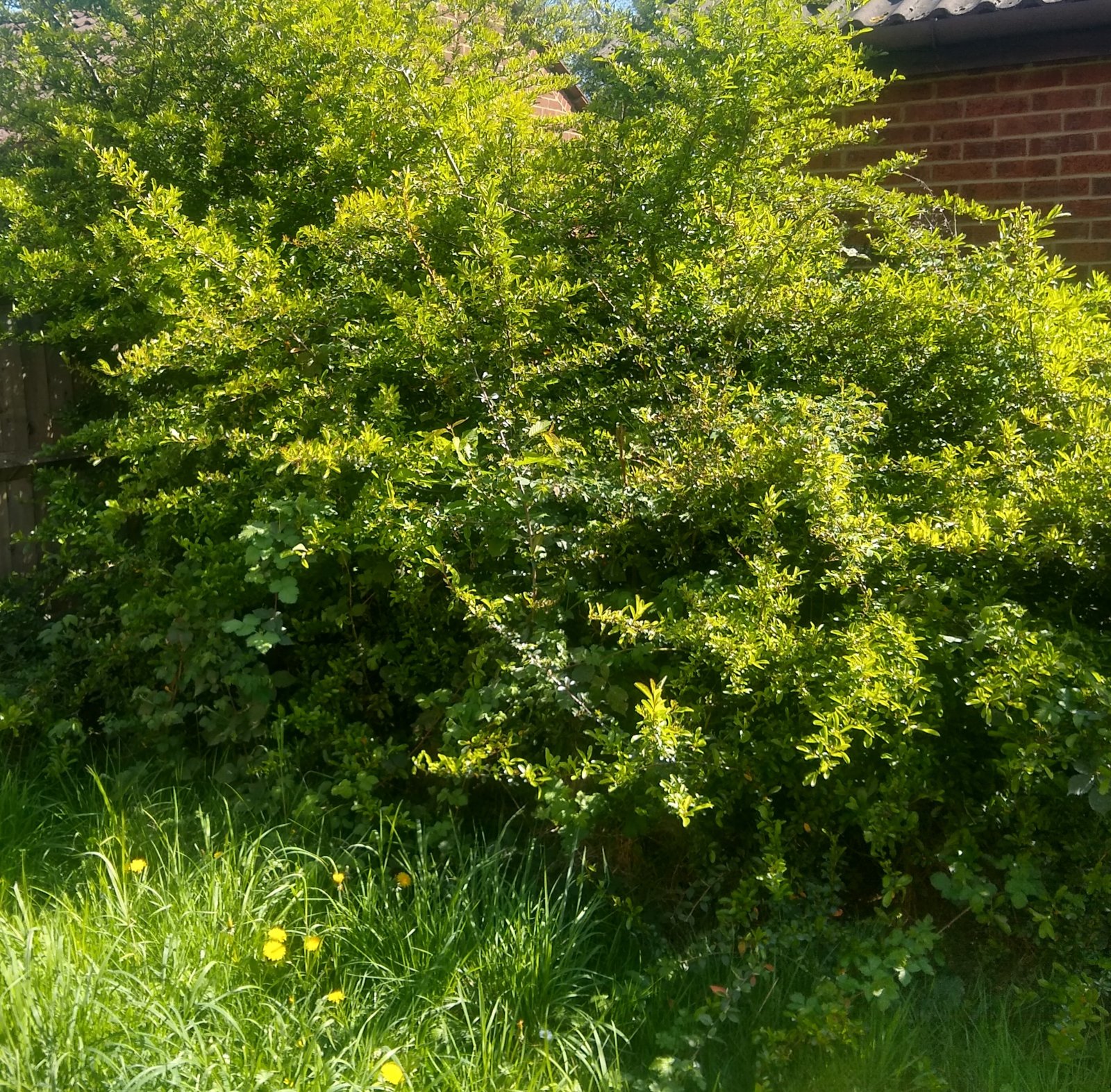 I have pyracantha near the house (planted by previous owners as a deterrent to climbing the fence) and lots of bramble around the garden. Brambles are almost impossible to eradicate w/o using a herbicide repeatedly or by digging up & removing a lot of soil as they regrow from roots.