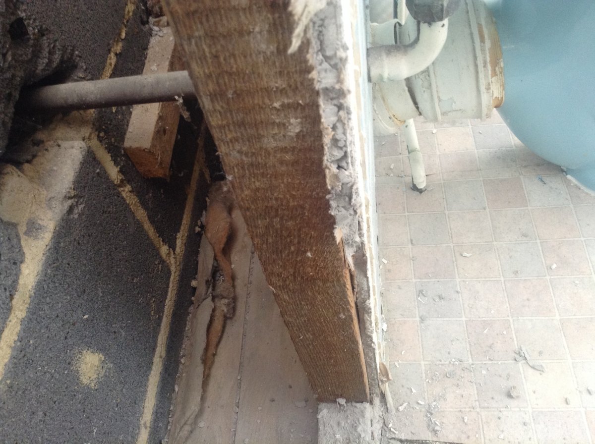straight out the back, through a plasterboard panel, then does a sharp right into the stack.