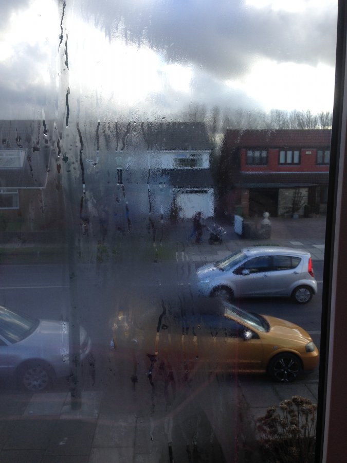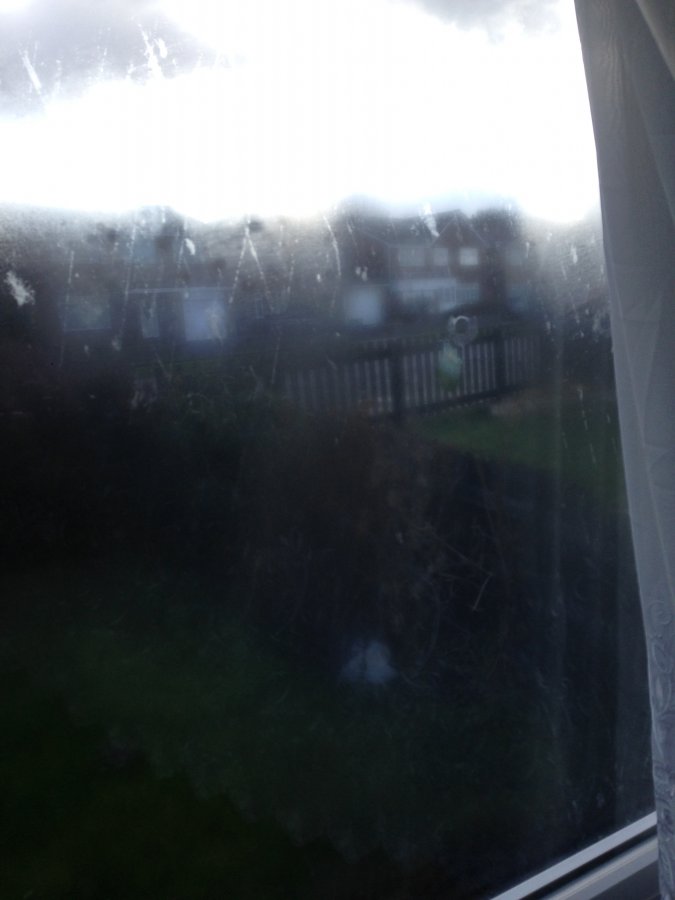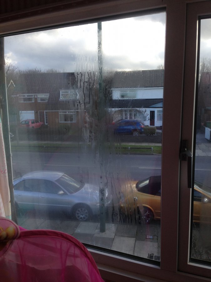 Your units have failed and not just starting, there isn't anything you can do to minimize the appearance other than replace, units can fail as early as 5 years from new and its accepted as the norm now, going by the style of handle, mechanical joints and external beading suggests your window is around 30 years old