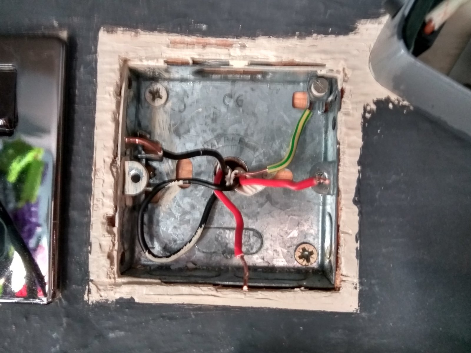 I've been trying to change the sockets in my bedroom from basic white to Black Nickel. Can anyone tell me what the heck is going on in the attached picture?