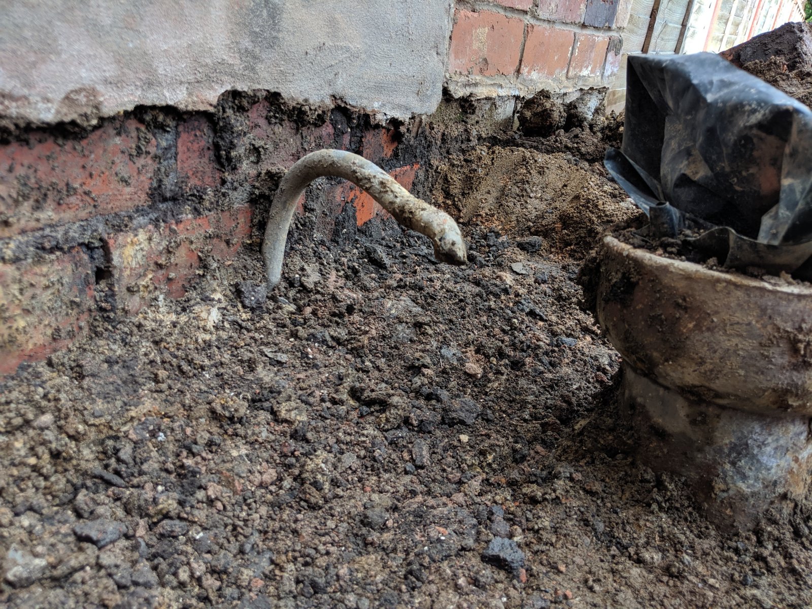 I'm excavating this area for block paving where an outdoor toilet once was. Just stumbled upon this pipe next to the soil pipe. Is this (or was) a water or gas pipe?