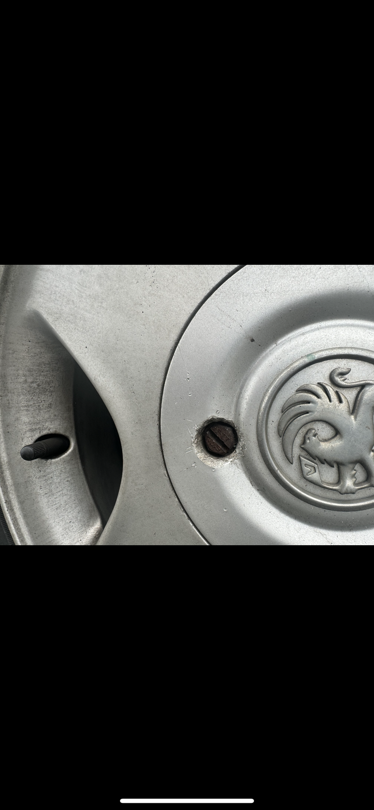 Unfortunately the steel screw reacts with the alloy wheel and this is what you get.