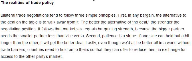 The second principle concerns patience. The side that can hold out longer gets the better deal. UK does not hold that card in negotiating exit from EU!