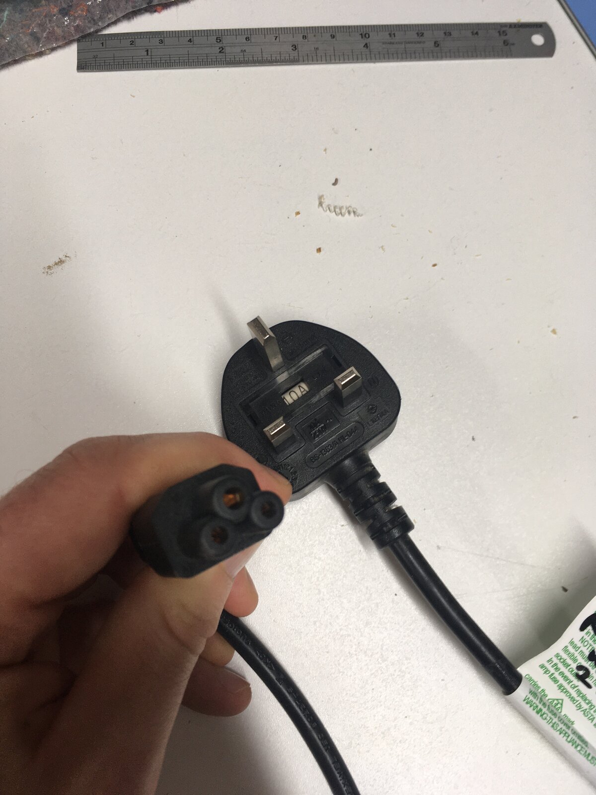 My LG widescreen display has a power cable a bit like a laptops. Jack in back of display, to box unit, and then a clover head plug to 10amp 3 pin plug. It's too short for me. I like to buy a 2-3m version of the last bit - clover head plug to 10amp 3 pin plug.